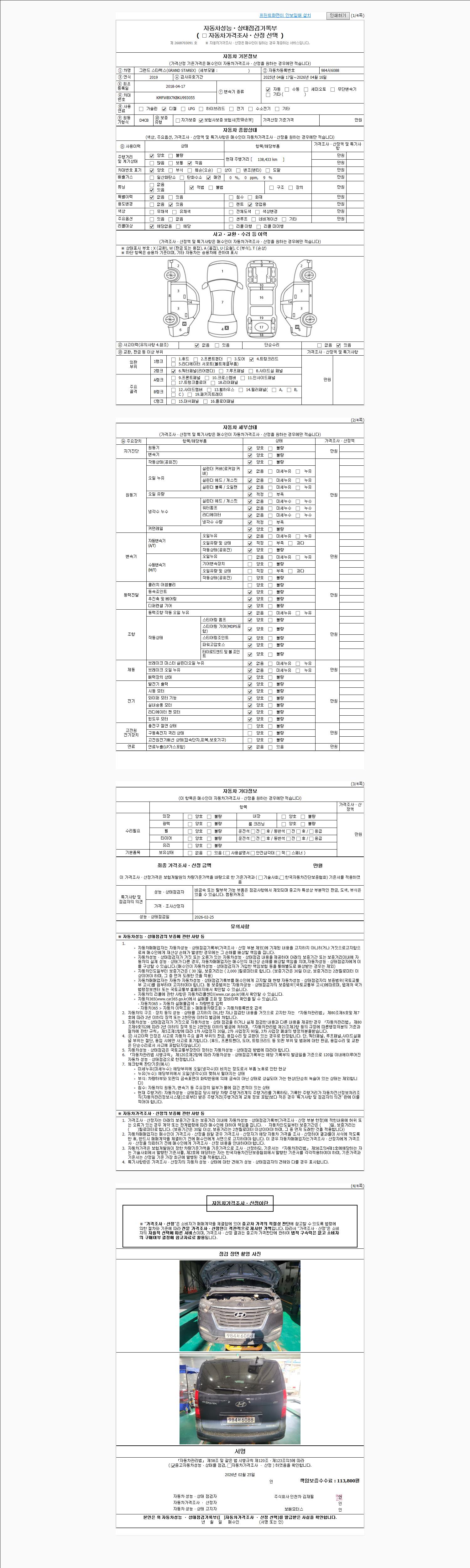| 주행거리 | 138,433 km | 차량번호 | 984서6088 |