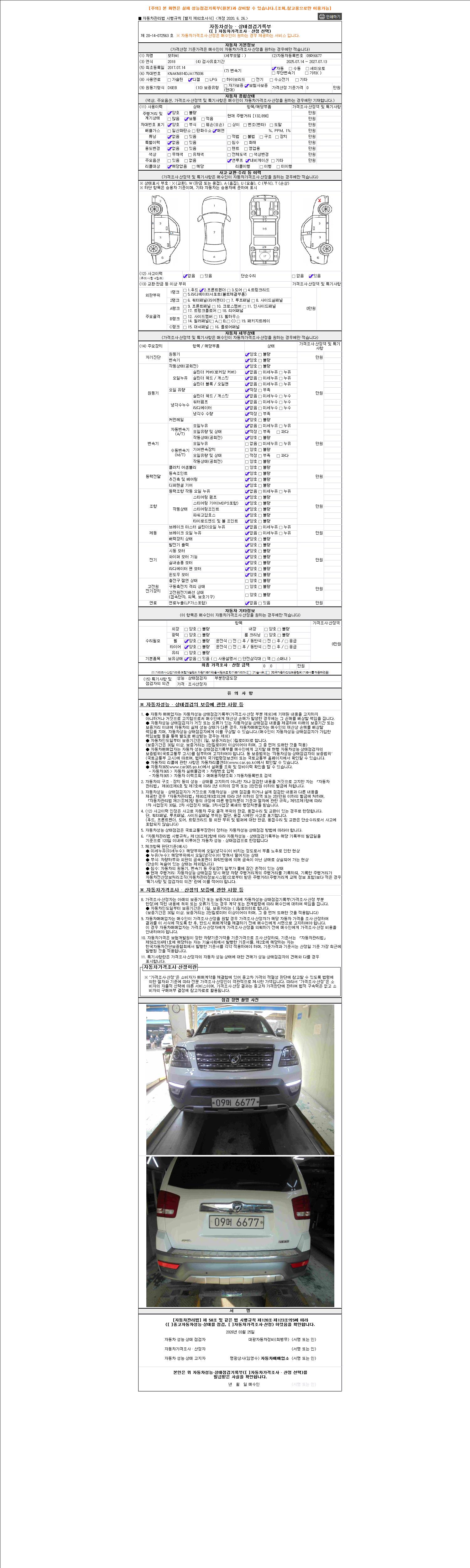 2. 차량 등록증이나 성능점검지 등을 상담자에게 요청및 확인하시고 사전에 미리 점검 하시기를 권유드립니다.