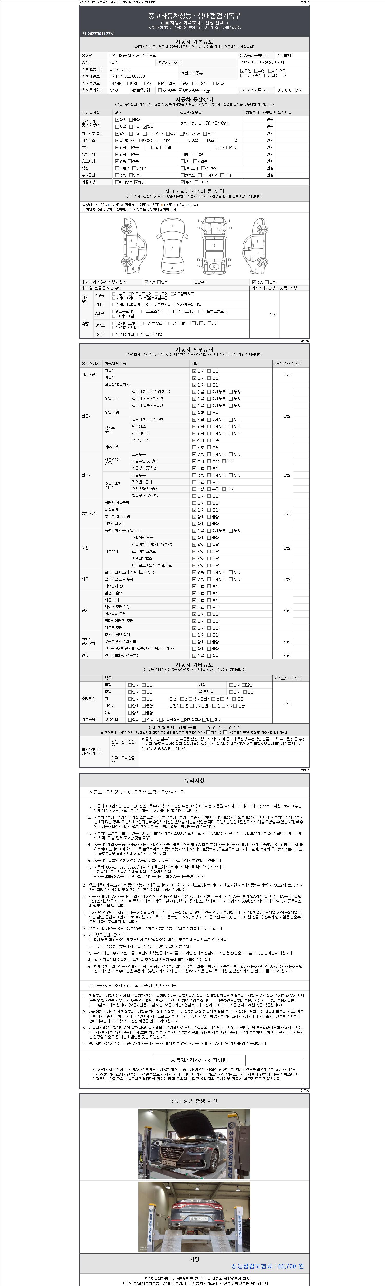 2. 차량 등록증이나 성능점검지 등을 상담자에게 요청및 확인하시고 사전에 미리 점검 하시기를 권유드립니다.