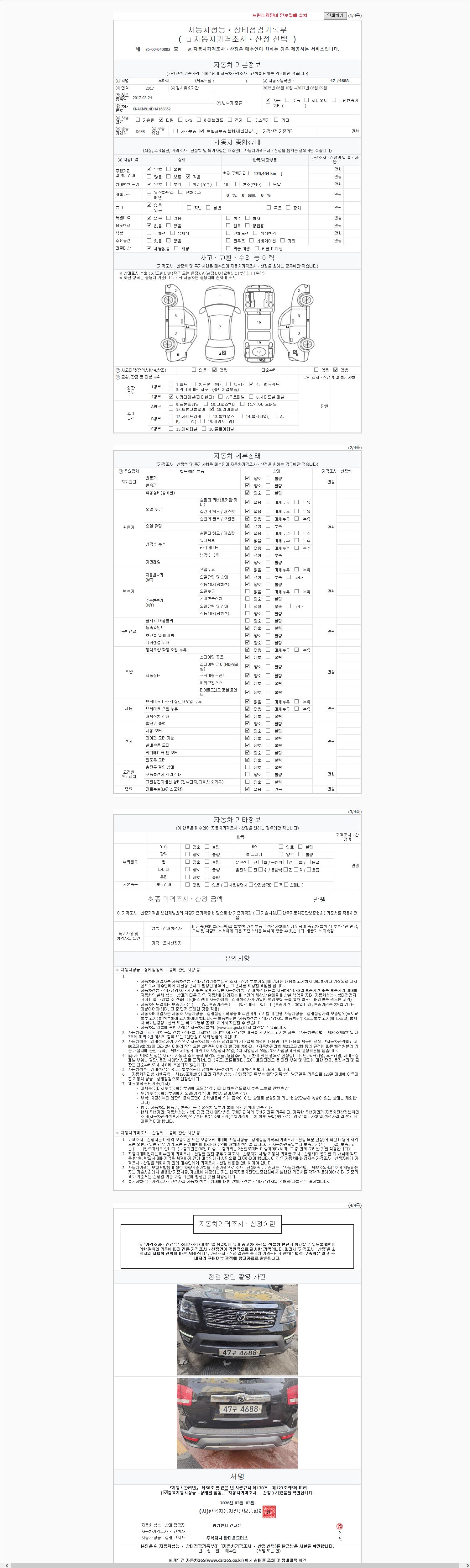 오토|경유|2017년 3월|170,403 km 47구4688| cc|검정색|무사고 |