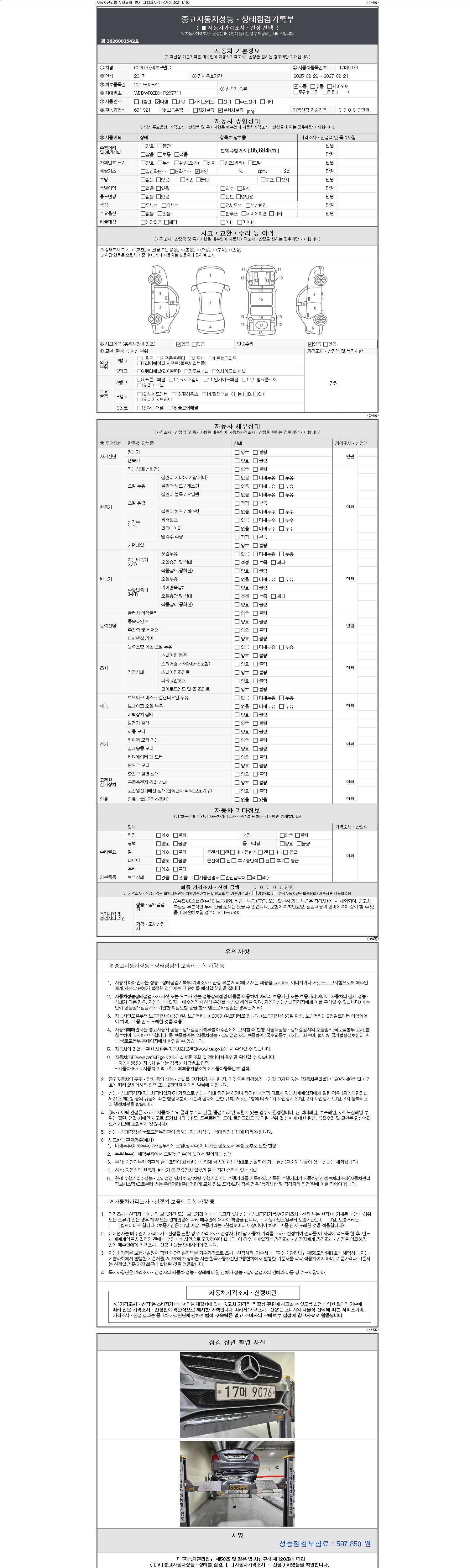 2. 차량 등록증이나 성능점검지 등을 상담자에게 요청및 확인하시고 사전에 미리 점검 하시기를 권유드립니다.
