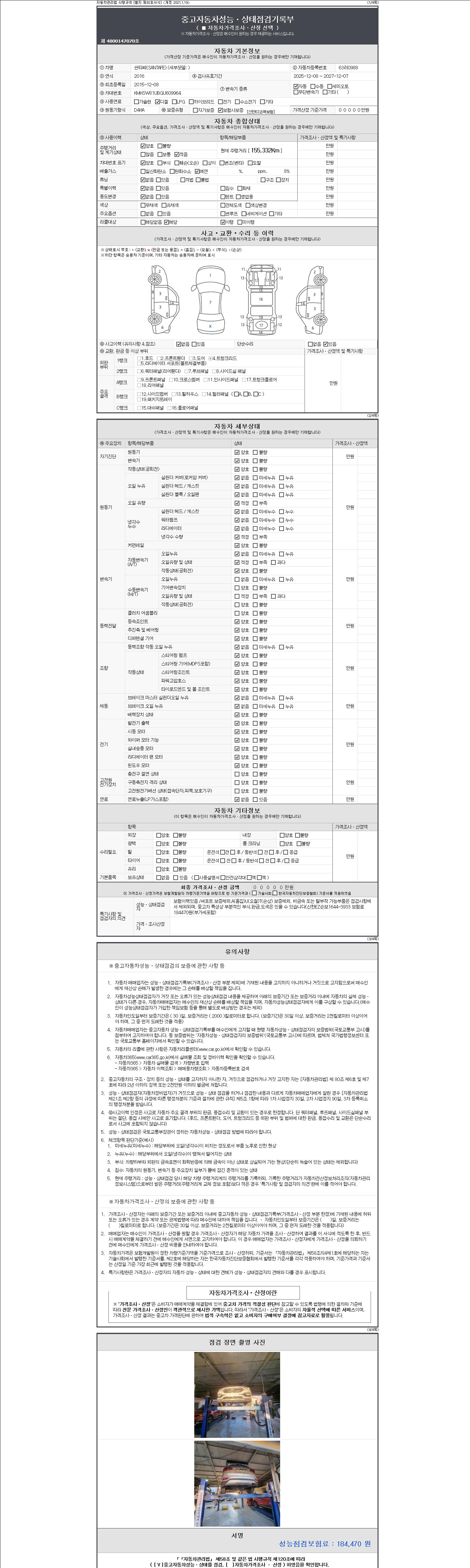 2. 차량 등록증이나 성능점검지 등을 상담자에게 요청및 확인하시고 사전에 미리 점검 하시기를 권유드립니다.