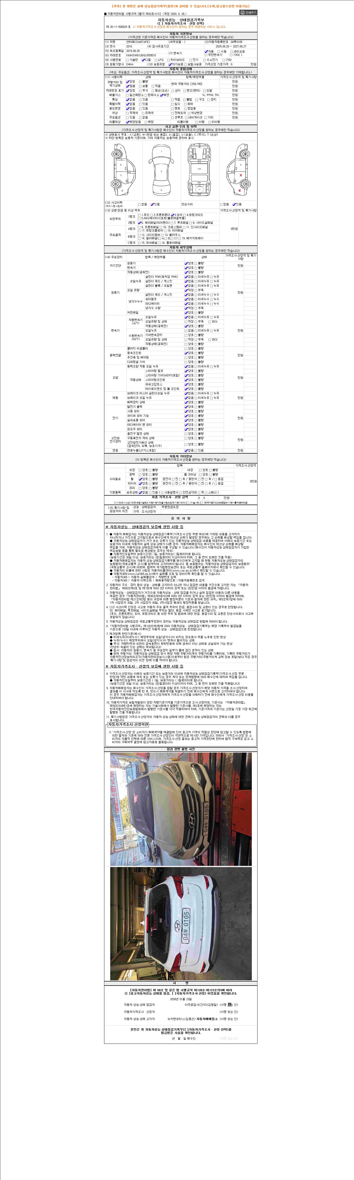 2. 차량 등록증이나 성능점검지 등을 상담자에게 요청및 확인하시고 사전에 미리 점검 하시기를 권유드립니다.