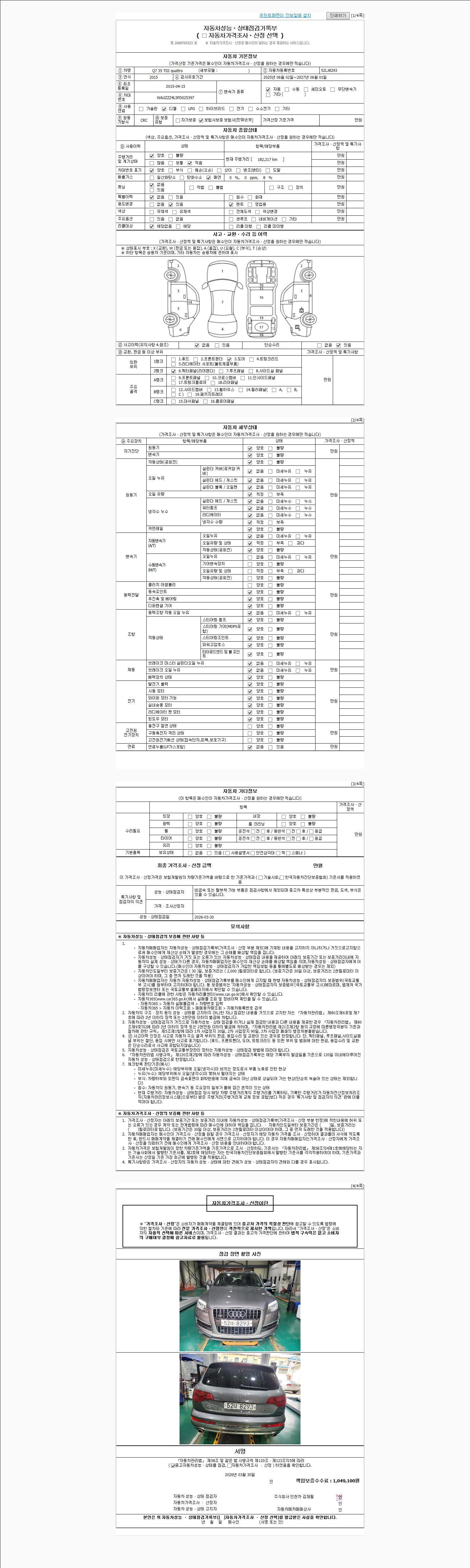 2. 차량 등록증이나 성능점검지 등을 상담자에게 요청및 확인하시고 사전에 미리 점검 하시기를 권유드립니다.