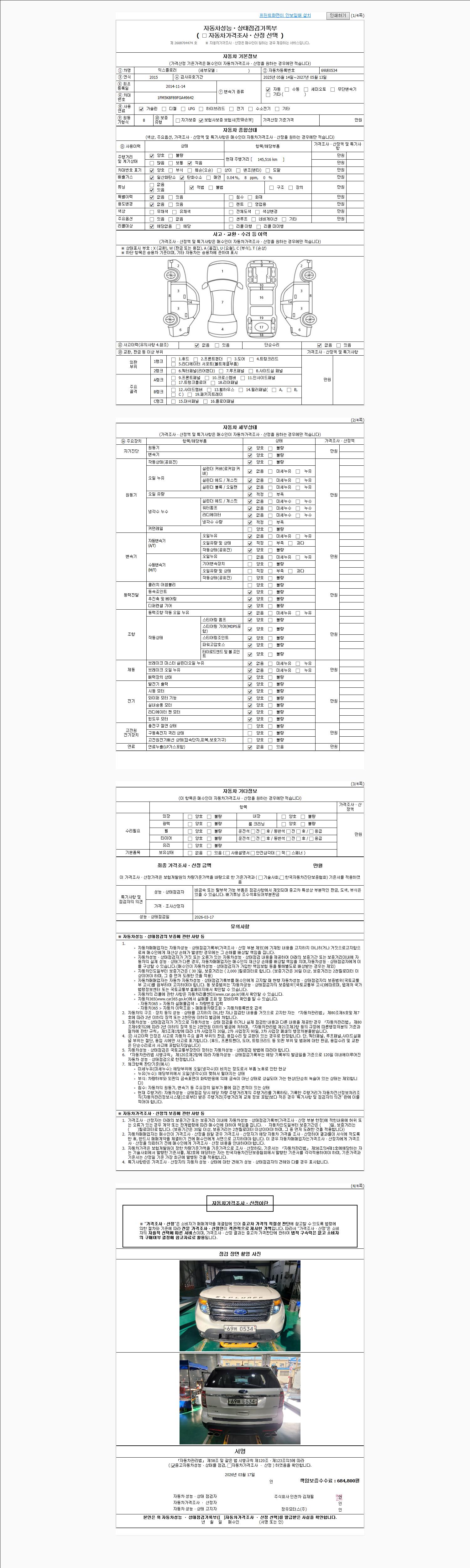 | 주행거리 | 145,516 km | 차량번호 | 69버0534 |