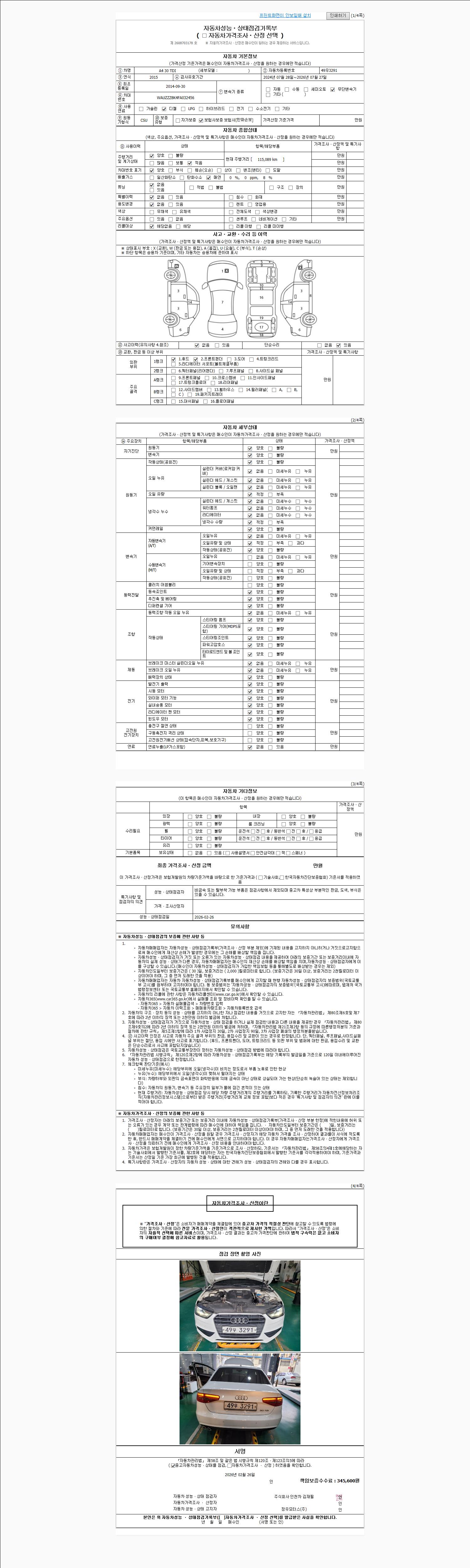2. 차량 등록증이나 성능점검지 등을 상담자에게 요청및 확인하시고 사전에 미리 점검 하시기를 권유드립니다.