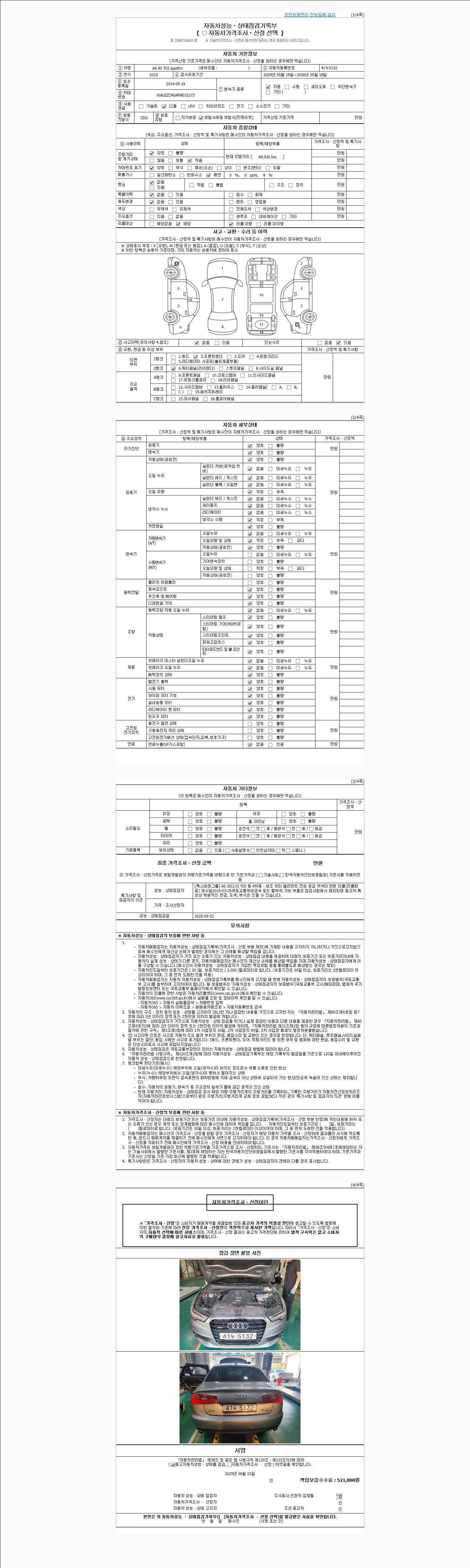 -중고자동차 매매업자를 통해 차량을 구입하실 경우 반드시 "중고자동차 성능, 상태점검 기록부"를 교뷰 받으셔야 하며, 매매업자는 반드시 의무 교부 하여야 압니다.