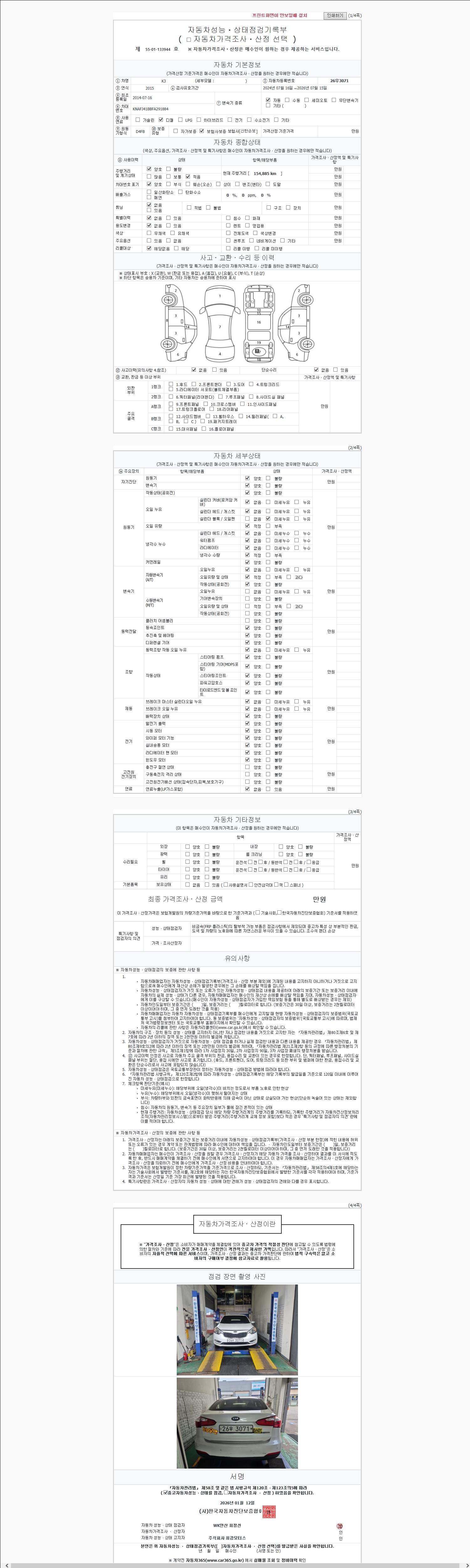 | 주행거리 | 154,885 km | 차량번호 | 26우3071 |