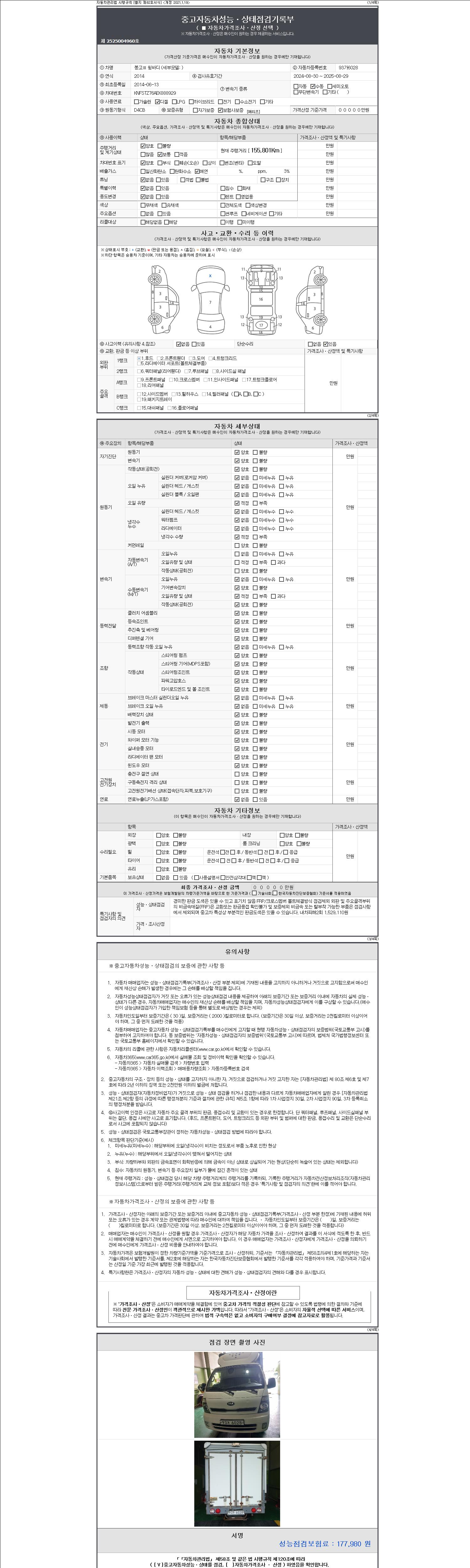 2. 차량 등록증이나 성능점검지 등을 상담자에게 요청및 확인하시고 사전에 미리 점검 하시기를 권유드립니다.