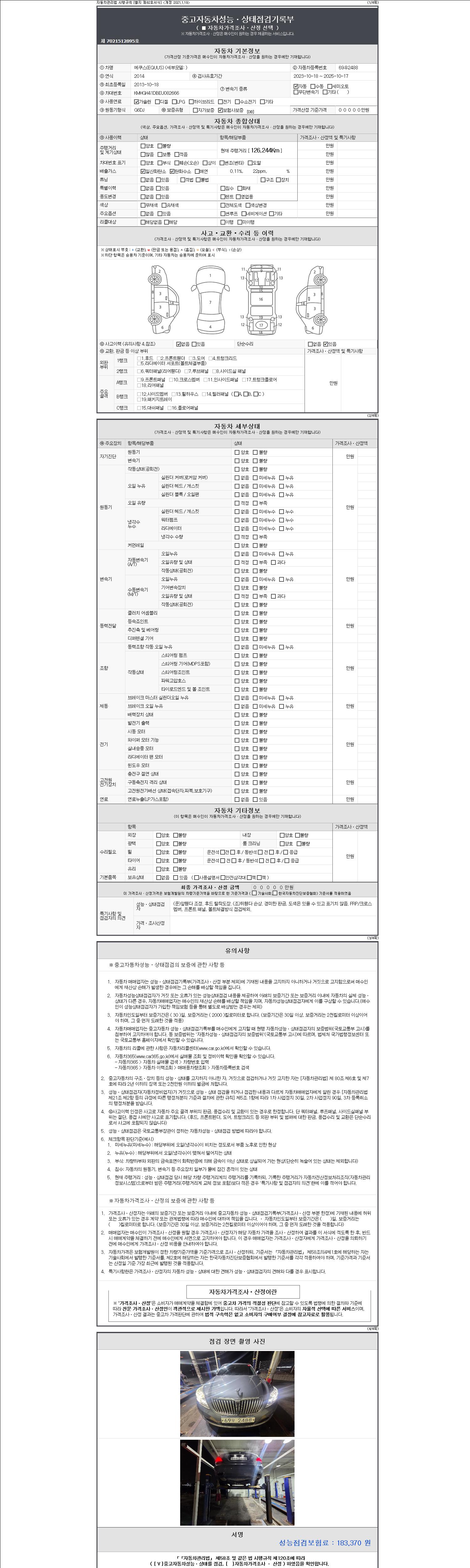 2. 차량 등록증이나 성능점검지 등을 상담자에게 요청및 확인하시고 사전에 미리 점검 하시기를 권유드립니다.