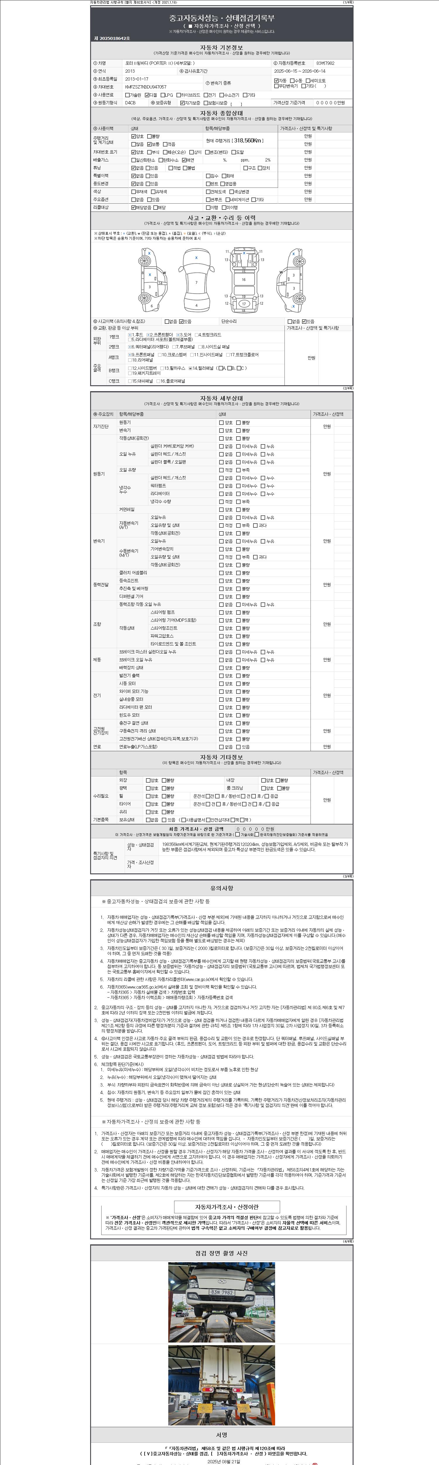 | 주행거리 | 318,435 km | 차량번호 | 83버7982 |