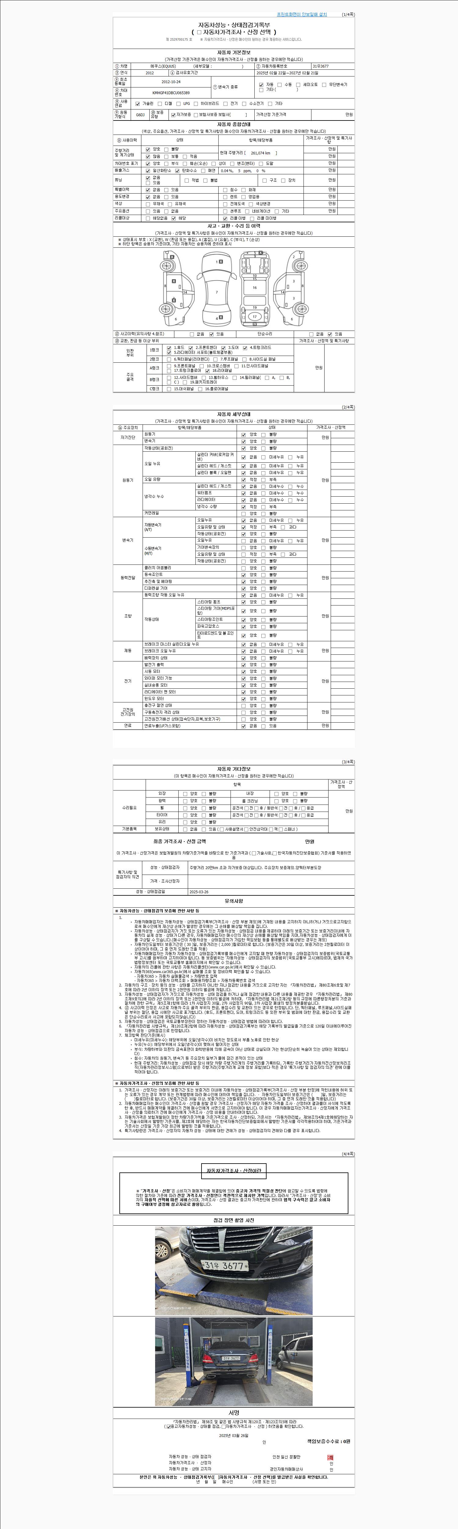 2. 차량 등록증이나 성능점검지 등을 상담자에게 요청및 확인하시고 사전에 미리 점검 하시기를 권유드립니다.