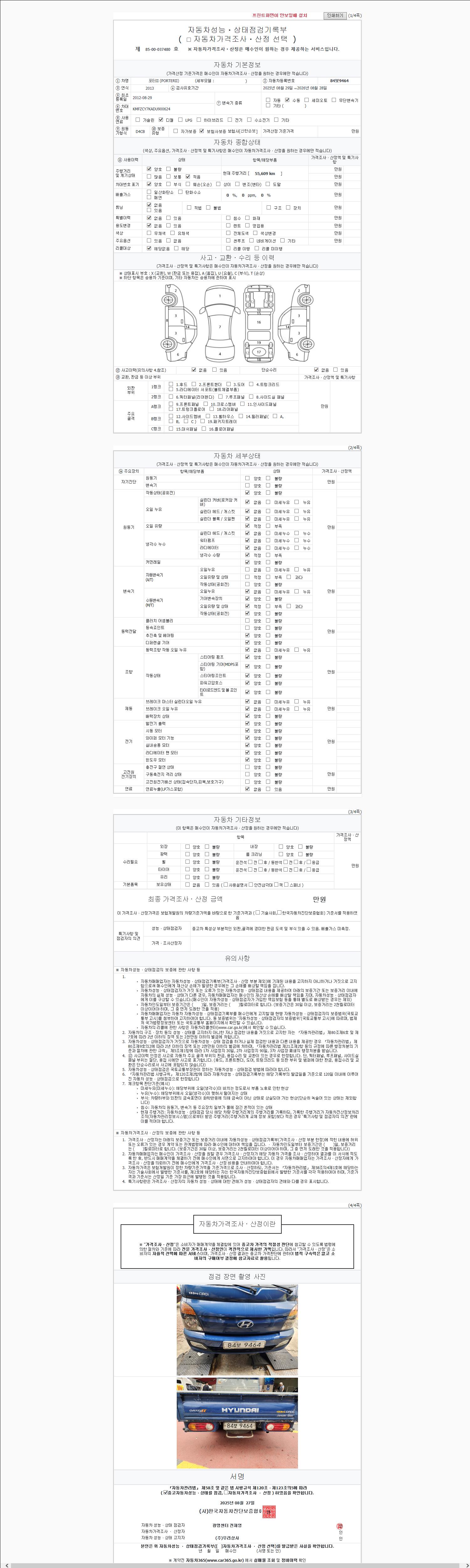 | 주행거리 | 55,609 km | 차량번호 | 84보9464 |