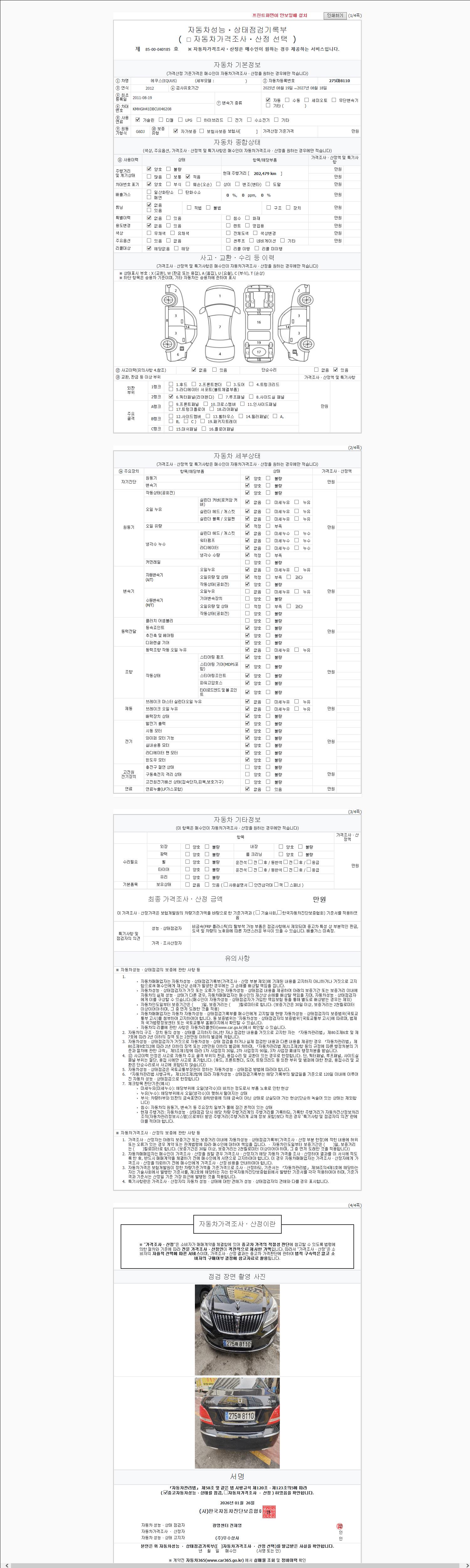 2. 차량 등록증이나 성능점검지 등을 상담자에게 요청및 확인하시고 사전에 미리 점검 하시기를 권유드립니다.