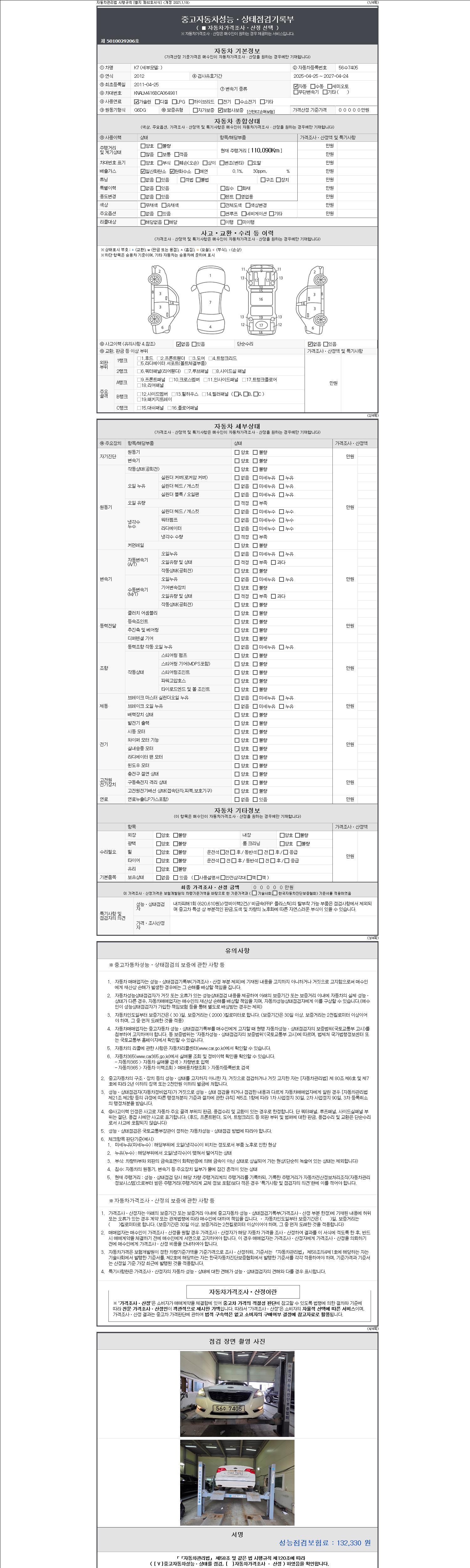 | 주행거리 | 110,090 km | 차량번호 | 56수7405 |