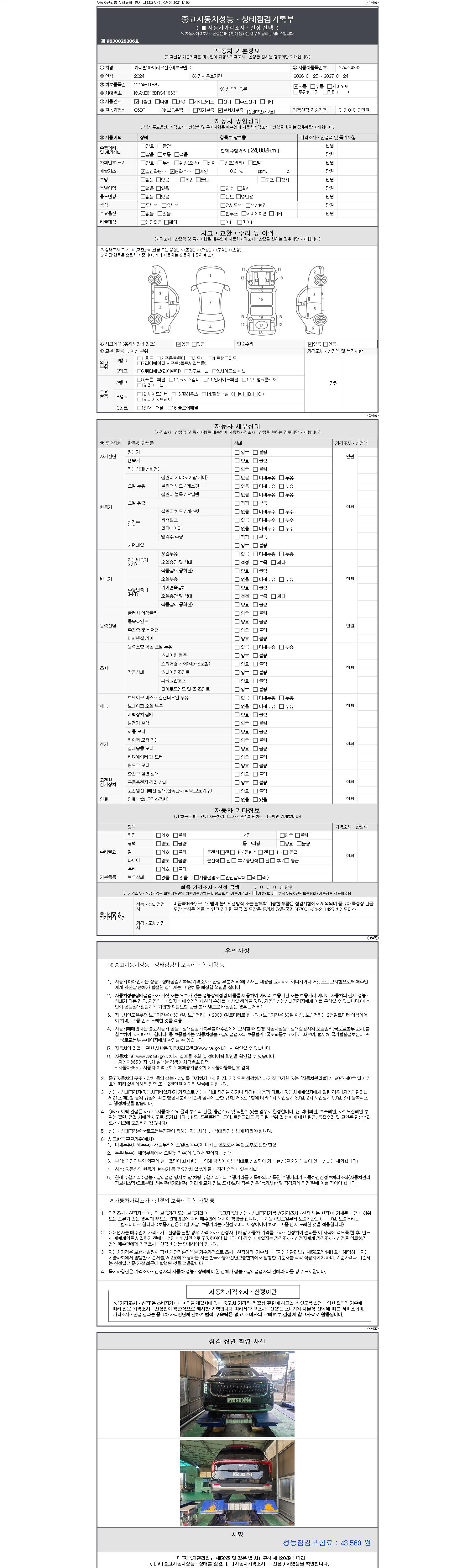| 주행거리 | 24,082 km | 차량번호 | 374러4863 |