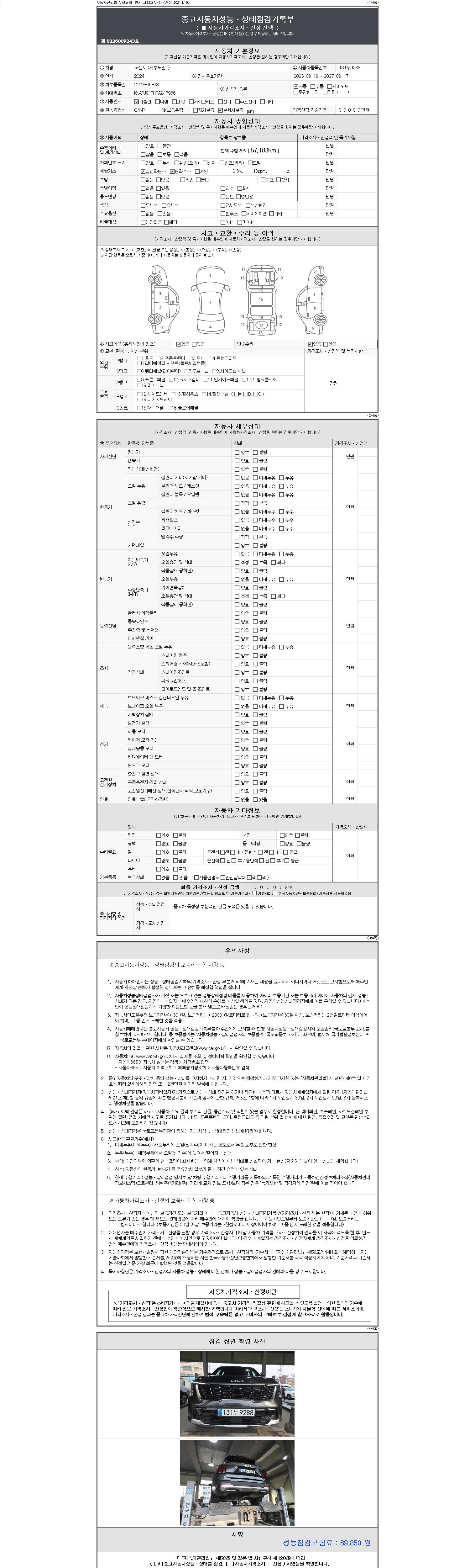 2. 차량 등록증이나 성능점검지 등을 상담자에게 요청및 확인하시고 사전에 미리 점검 하시기를 권유드립니다.