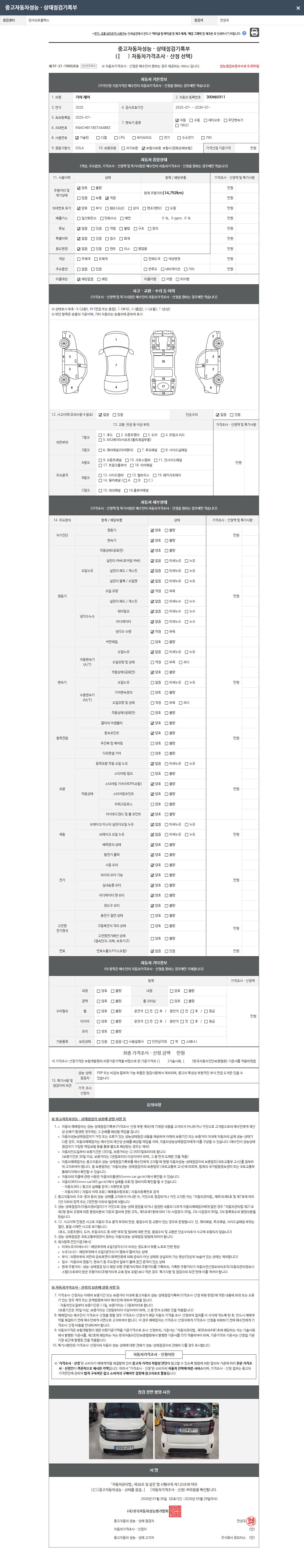 2. 차량 등록증이나 성능점검지 등을 상담자에게 요청및 확인하시고 사전에 미리 점검 하시기를 권유드립니다.