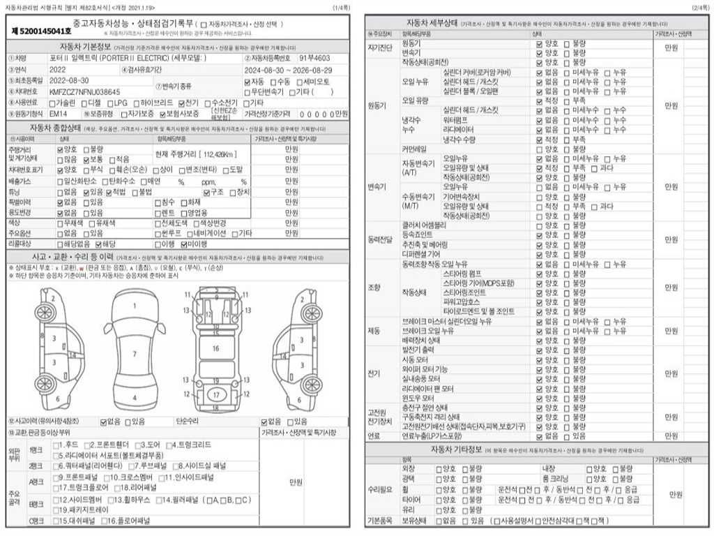 -중고자동차 매매업자를 통해 차량을 구입하실 경우 반드시 "중고자동차 성능, 상태점검 기록부"를 교뷰 받으셔야 하며, 매매업자는 반드시 의무 교부 하여야 압니다.