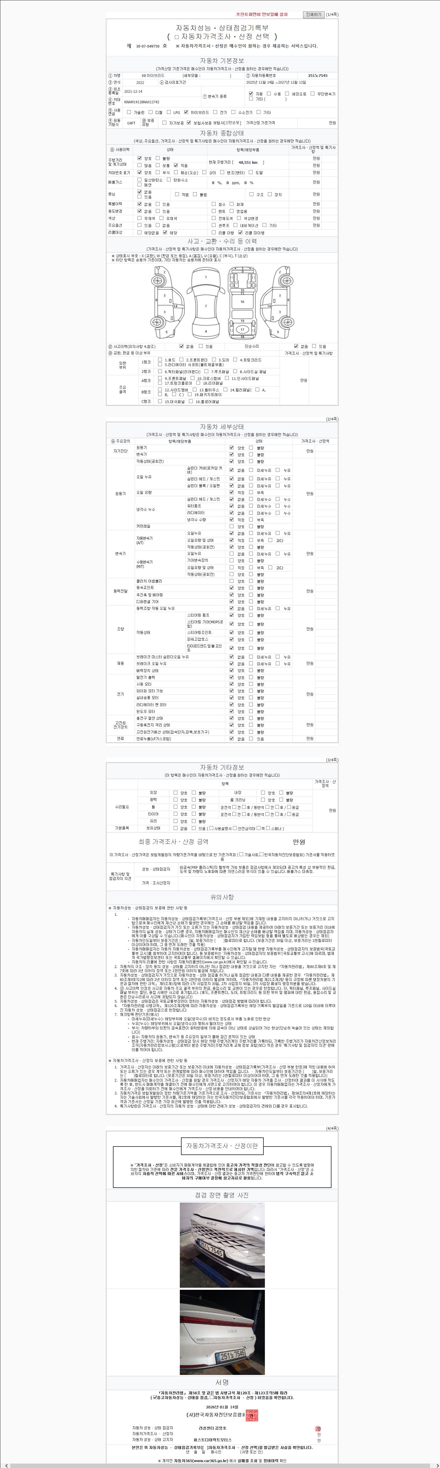 2. 차량 등록증이나 성능점검지 등을 상담자에게 요청및 확인하시고 사전에 미리 점검 하시기를 권유드립니다.