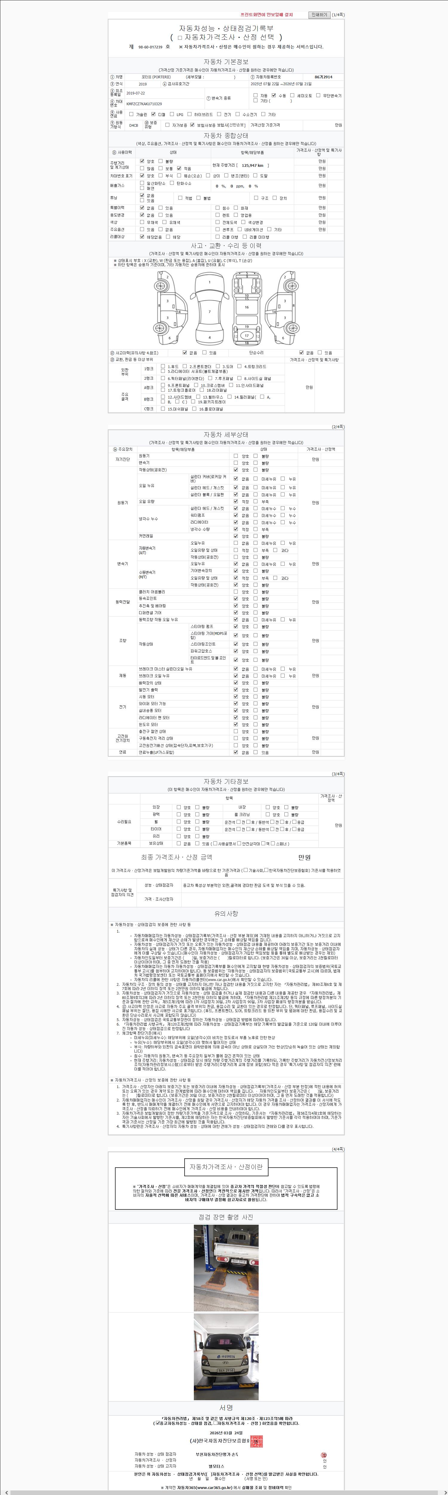 | 주행거리 | 125,948 km | 차량번호 | 86거2914 |