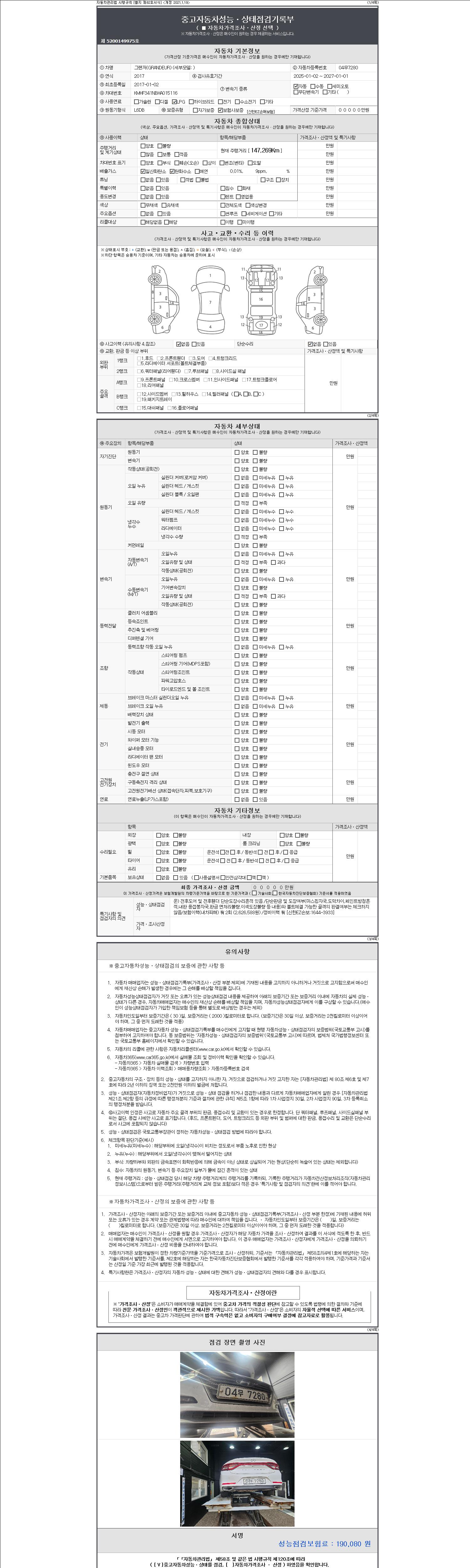 | 주행거리 | 147,269 km | 차량번호 | 04무7280 |