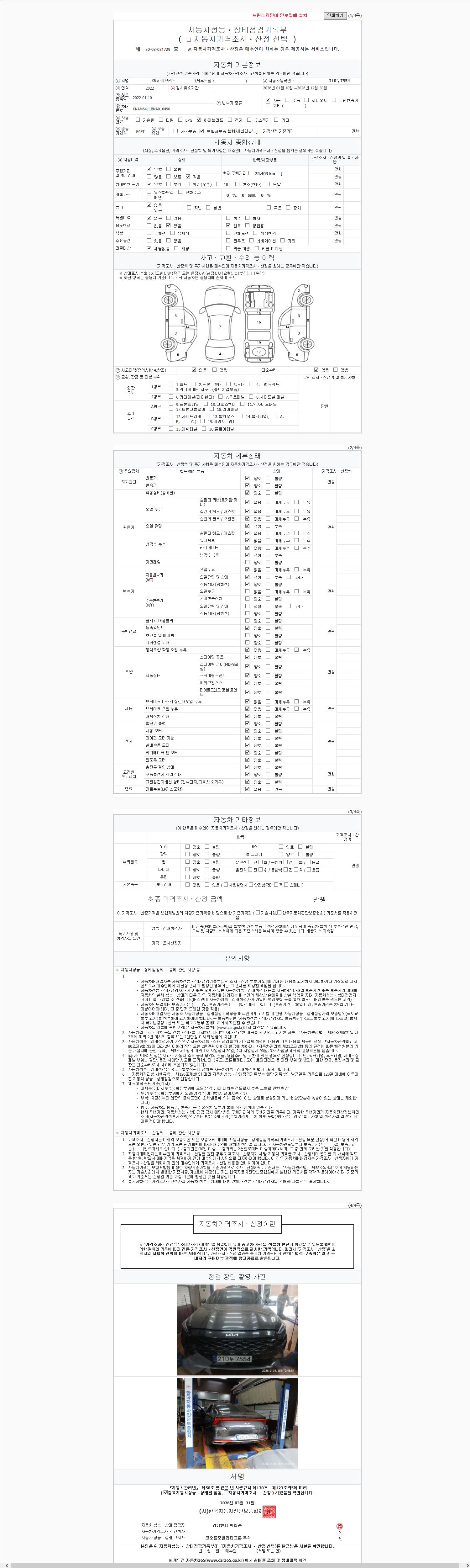 | 사고유무 | 성능기록부 참조 | 제시번호 | 제 2626210067 호 |
