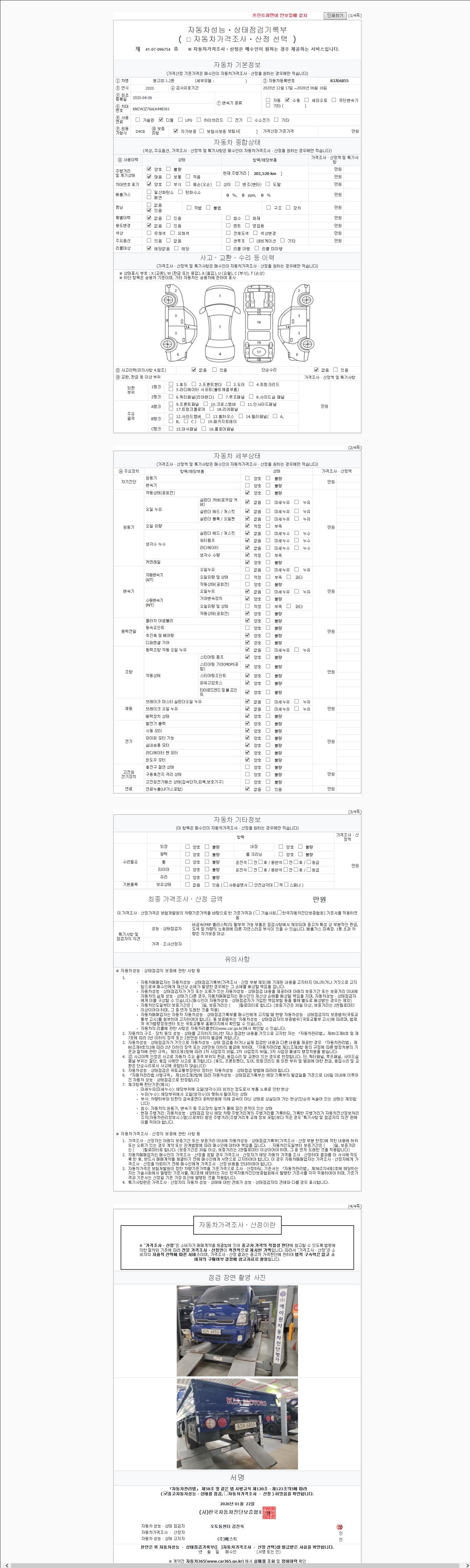 | 주행거리 | 201,178 km | 차량번호 | 83저6855 |