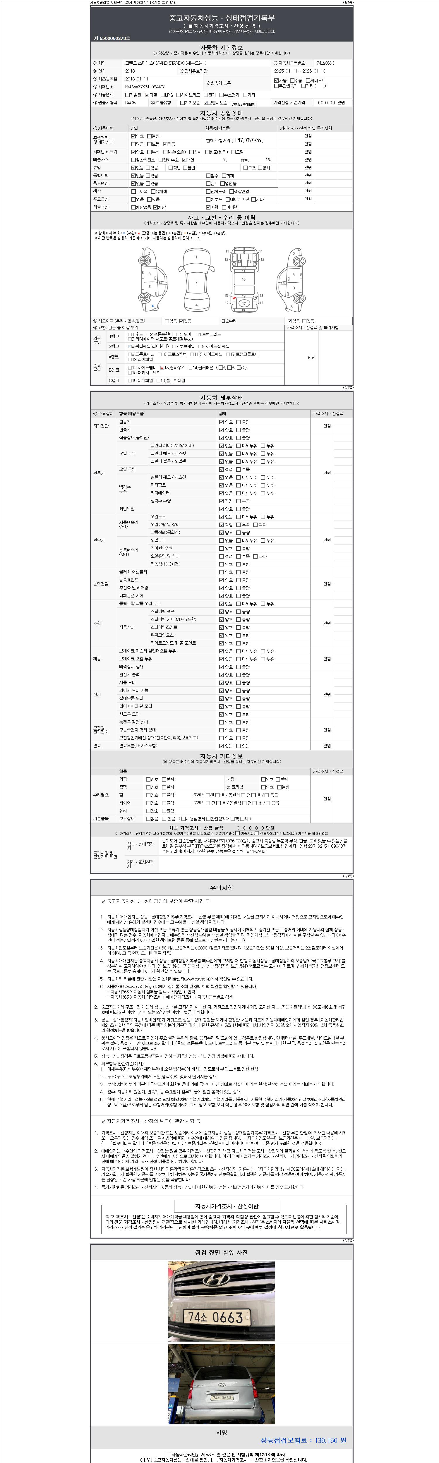| 주행거리 | 147,767 km | 차량번호 | 74소0663 |