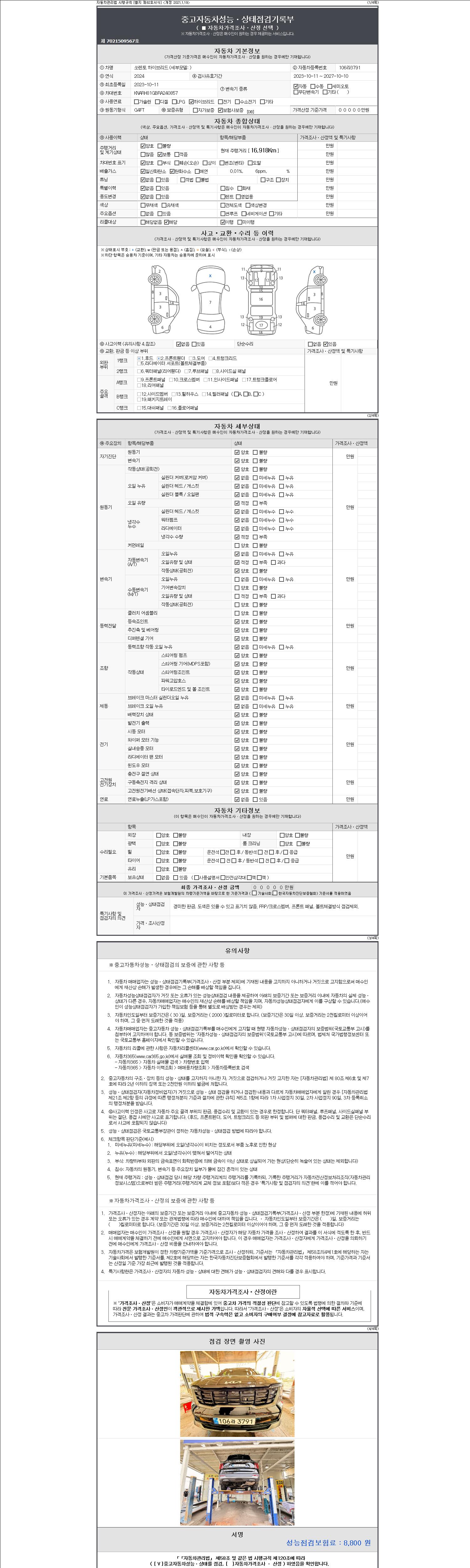 | 주행거리 | 16,918 km | 차량번호 | 106라3791 |