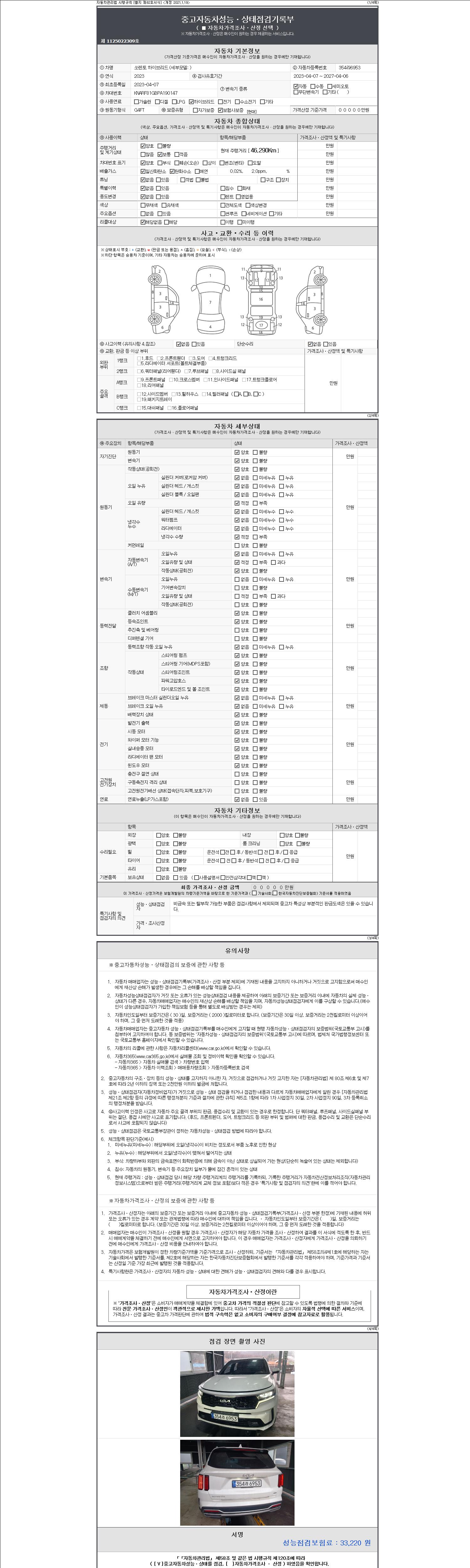 오토|휘발유 하이브리드|2023년 4월|46,290 km 354라6953| cc|미선택|무사고 |