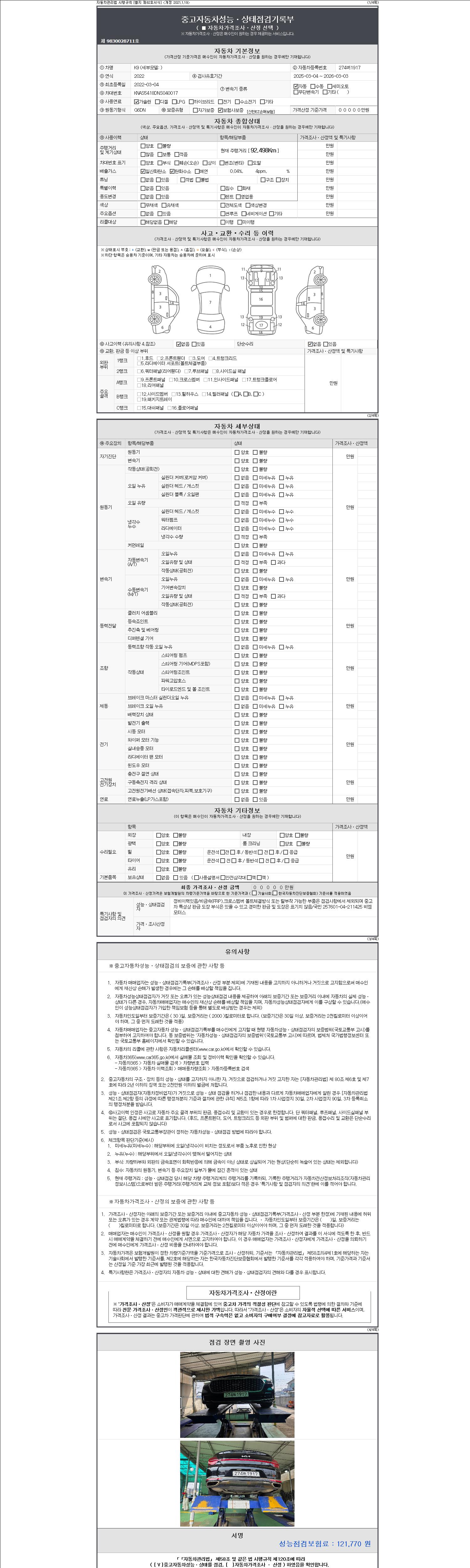2. 차량 등록증이나 성능점검지 등을 상담자에게 요청및 확인하시고 사전에 미리 점검 하시기를 권유드립니다.