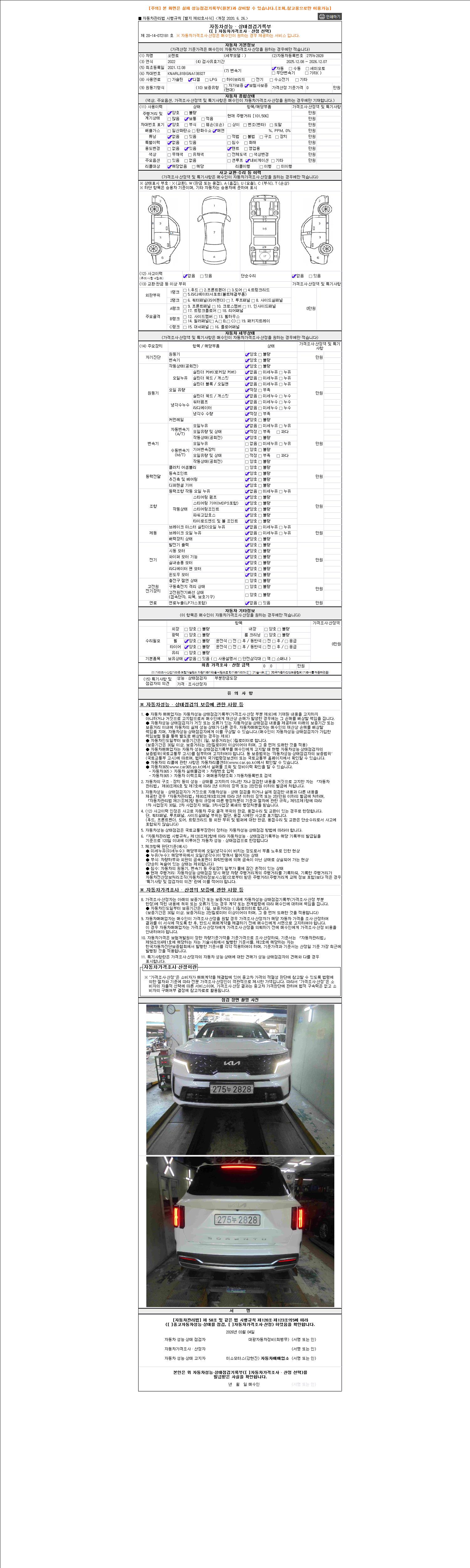 2. 차량 등록증이나 성능점검지 등을 상담자에게 요청및 확인하시고 사전에 미리 점검 하시기를 권유드립니다.