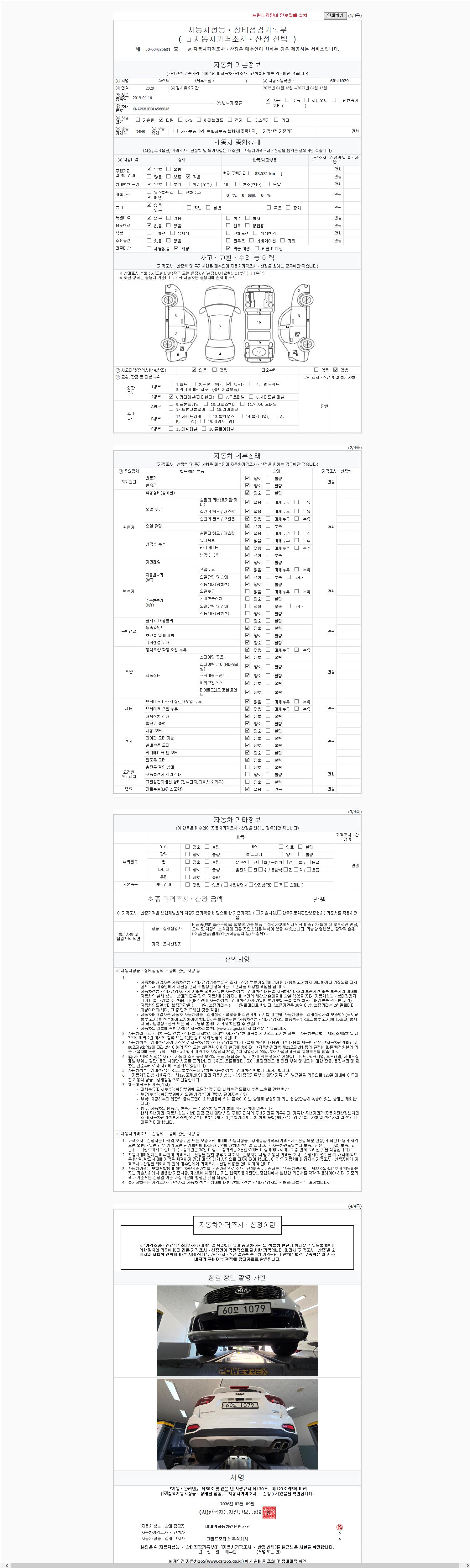 | 주행거리 | 83,531 km | 차량번호 | 60모1079 |