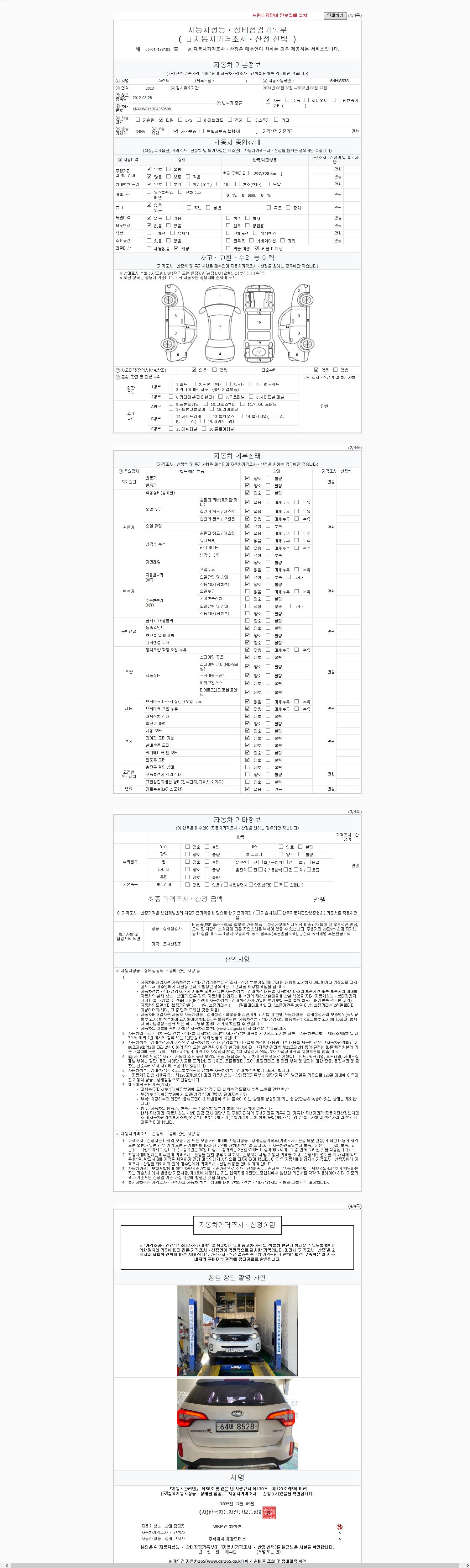 2. 차량 등록증이나 성능점검지 등을 상담자에게 요청및 확인하시고 사전에 미리 점검 하시기를 권유드립니다.