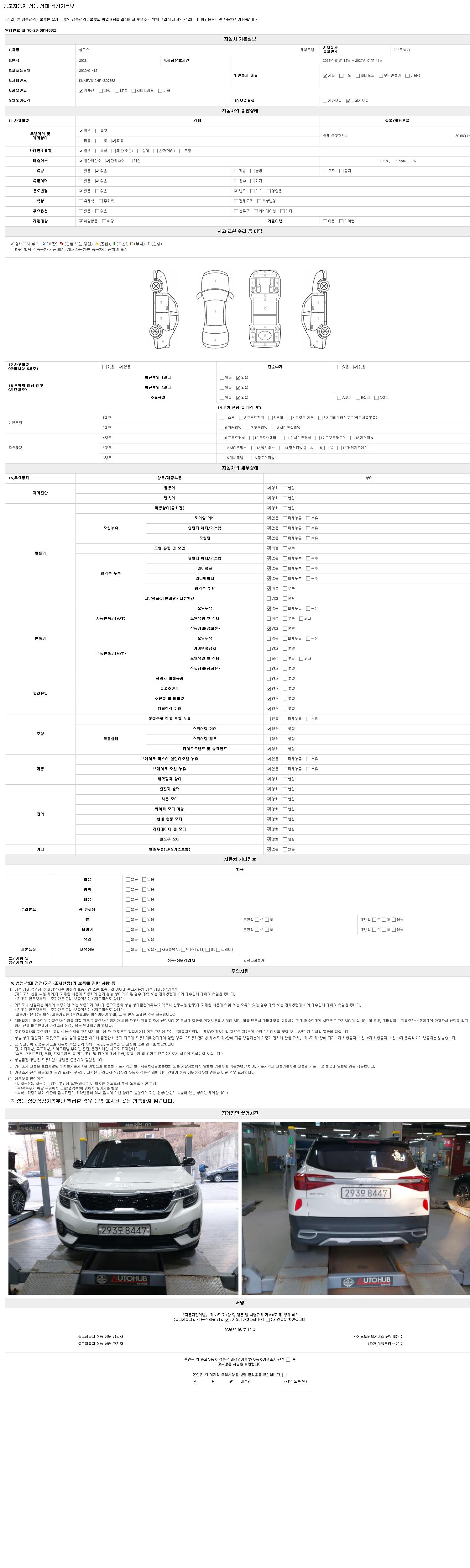 | 주행거리 | 39,680 km | 차량번호 | 293모8447 |