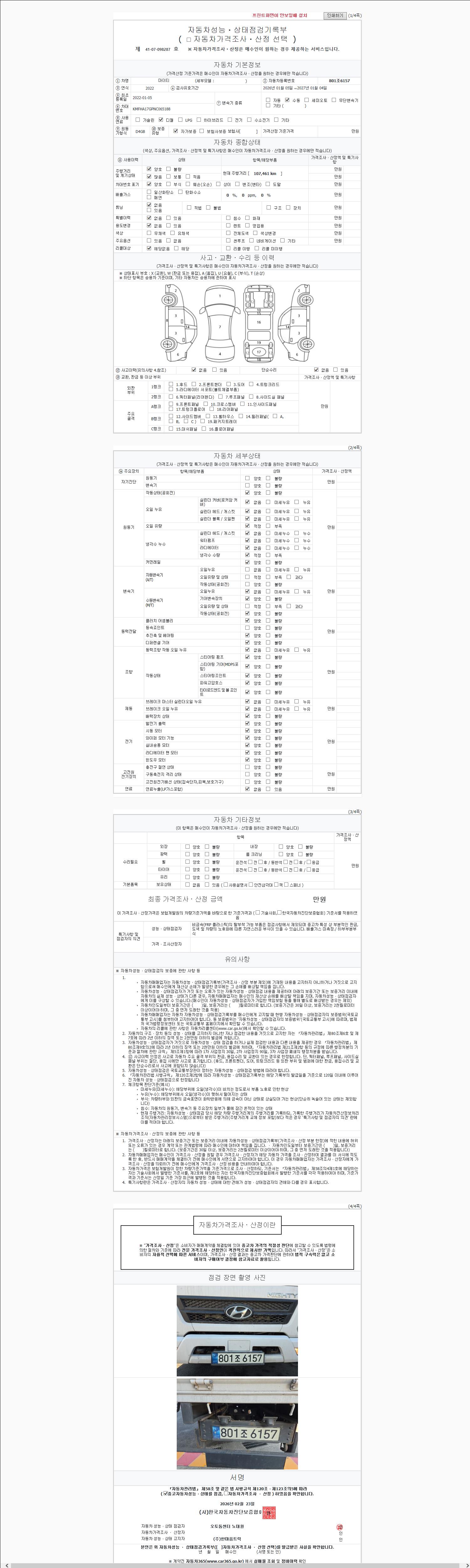 | 주행거리 | 107,461 km | 차량번호 | 801조6157 |