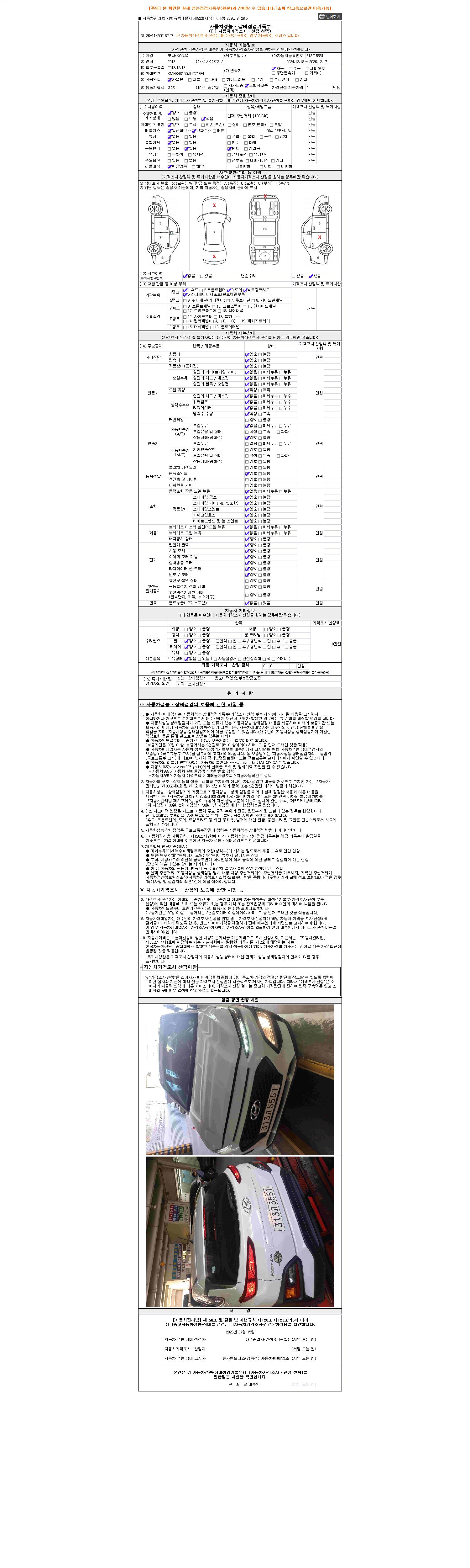 2. 차량 등록증이나 성능점검지 등을 상담자에게 요청및 확인하시고 사전에 미리 점검 하시기를 권유드립니다.