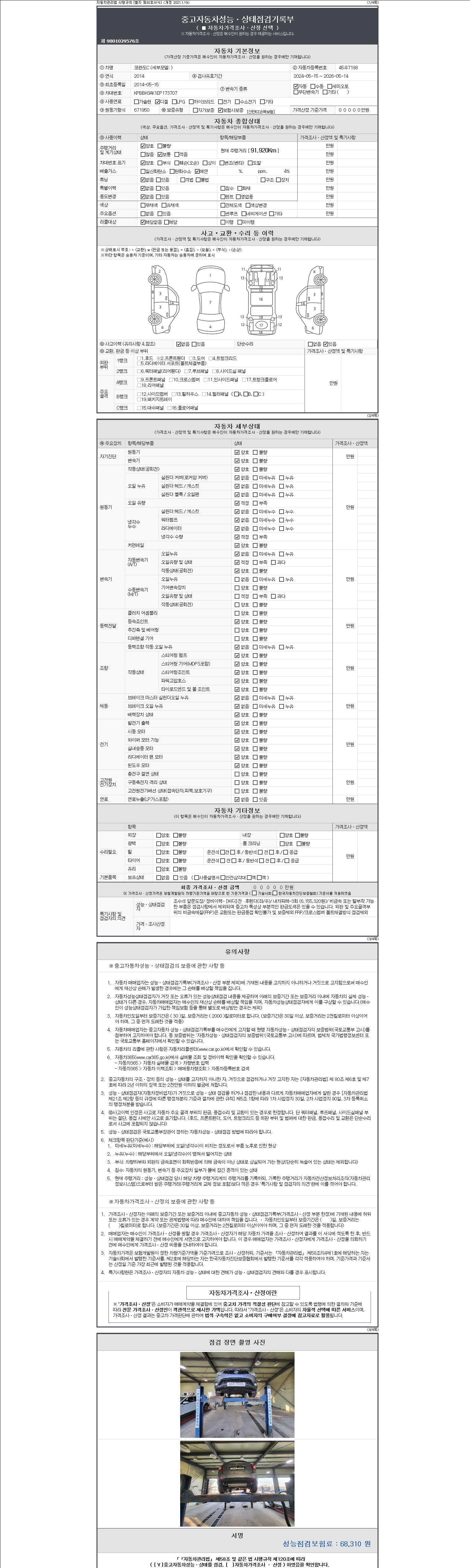 2. 차량 등록증이나 성능점검지 등을 상담자에게 요청및 확인하시고 사전에 미리 점검 하시기를 권유드립니다.