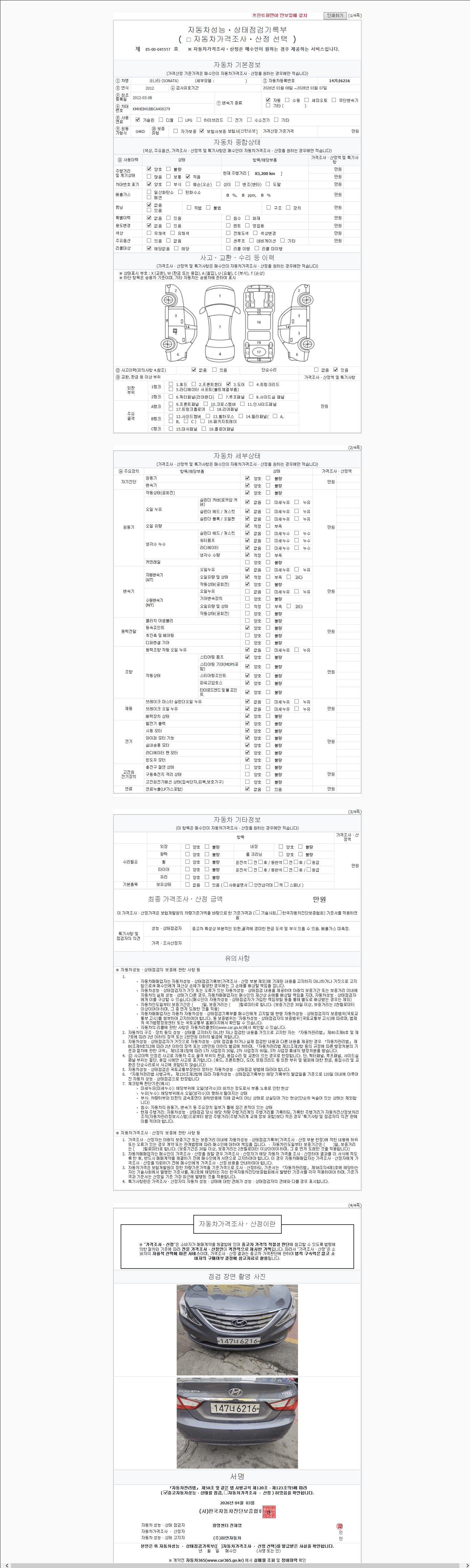 | 주행거리 | 83,197 km | 차량번호 | 147너6216 |