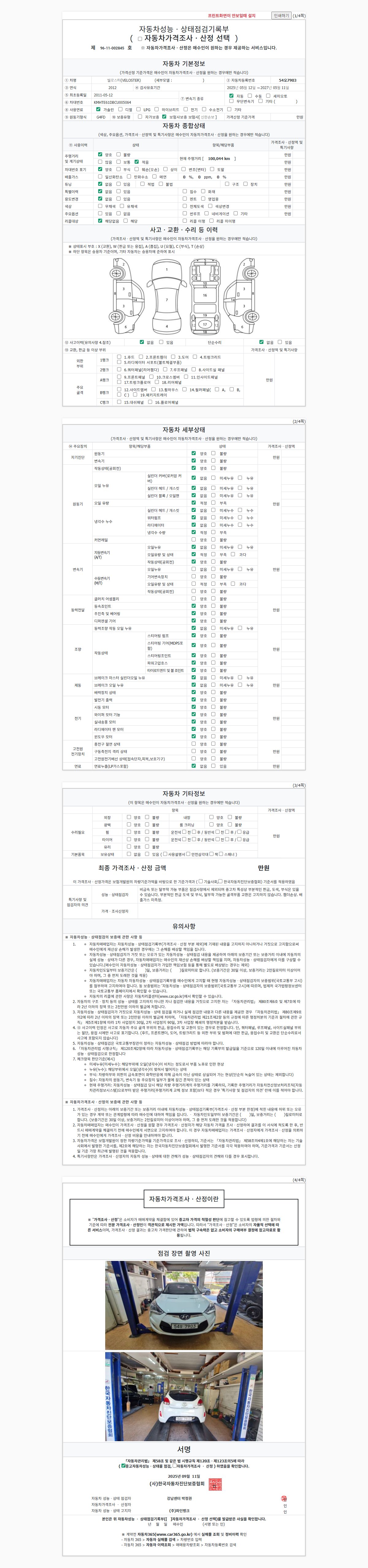 -중고자동차 매매업자를 통해 차량을 구입하실 경우 반드시 "중고자동차 성능, 상태점검 기록부"를 교뷰 받으셔야 하며, 매매업자는 반드시 의무 교부 하여야 압니다.