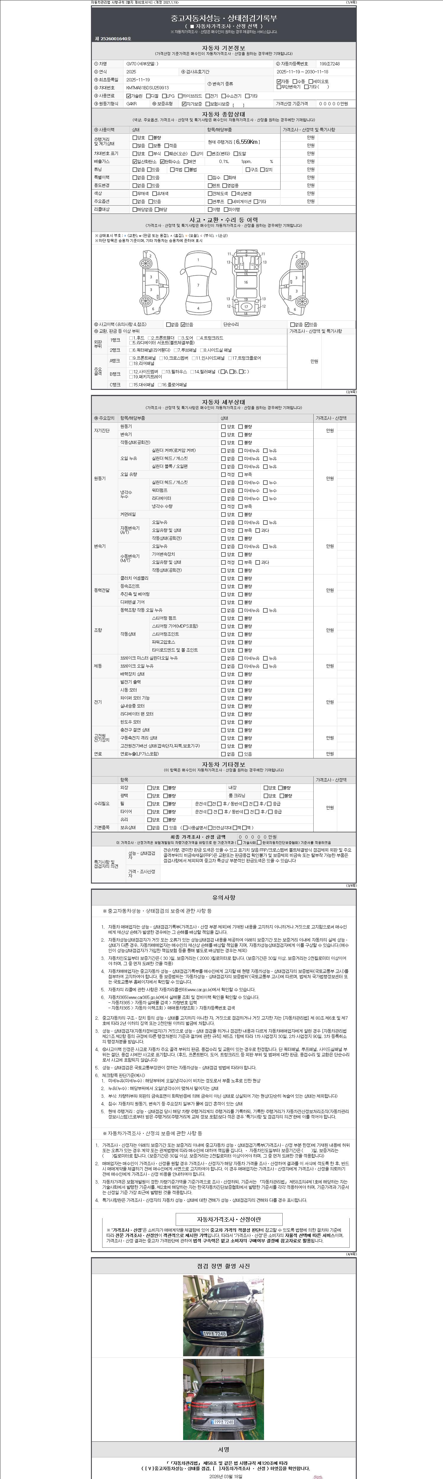 2. 차량 등록증이나 성능점검지 등을 상담자에게 요청및 확인하시고 사전에 미리 점검 하시기를 권유드립니다.
