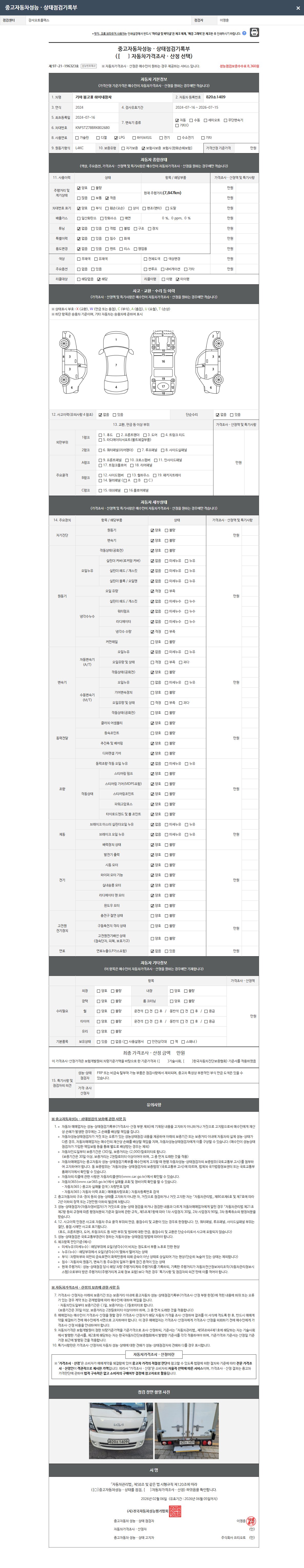 2. 차량 등록증이나 성능점검지 등을 상담자에게 요청및 확인하시고 사전에 미리 점검 하시기를 권유드립니다.