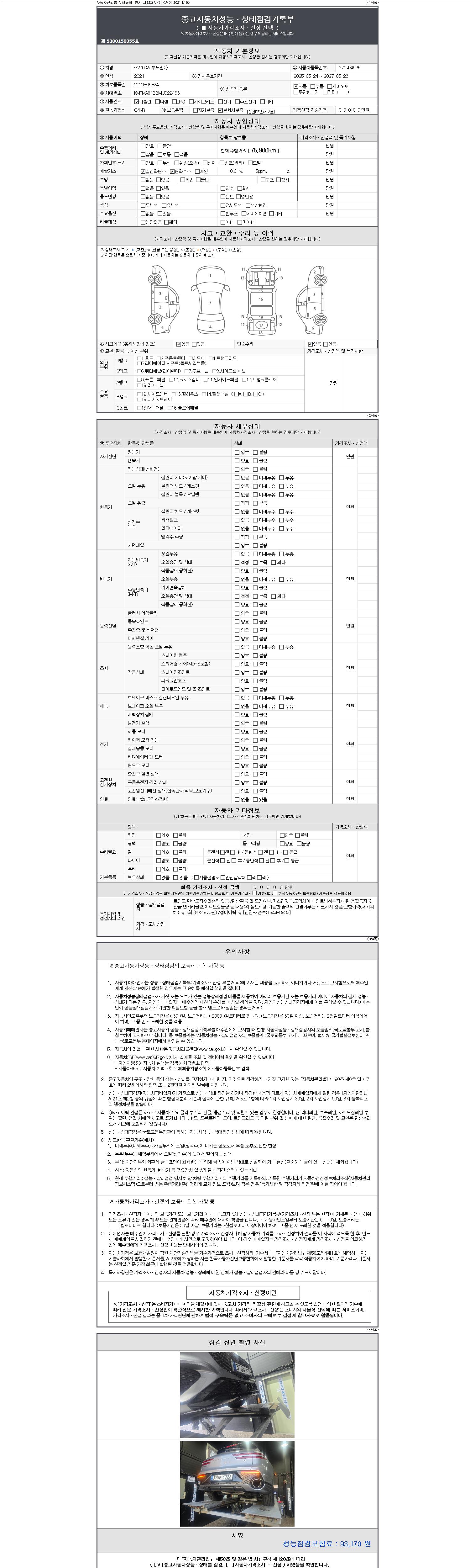 2. 차량 등록증이나 성능점검지 등을 상담자에게 요청및 확인하시고 사전에 미리 점검 하시기를 권유드립니다.