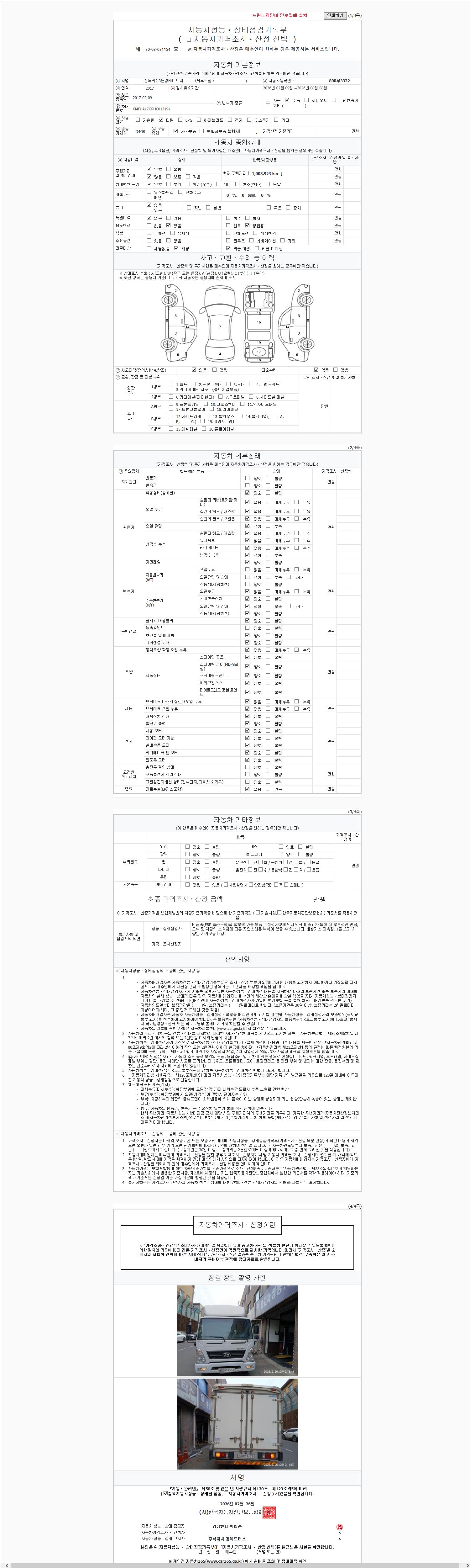 2. 차량 등록증이나 성능점검지 등을 상담자에게 요청및 확인하시고 사전에 미리 점검 하시기를 권유드립니다.