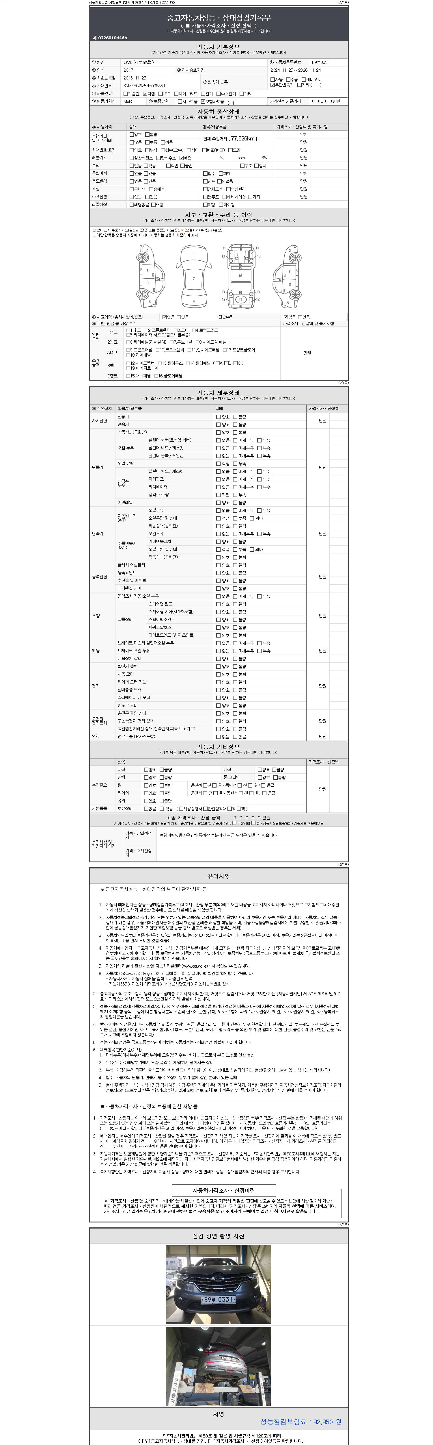2. 차량 등록증이나 성능점검지 등을 상담자에게 요청및 확인하시고 사전에 미리 점검 하시기를 권유드립니다.