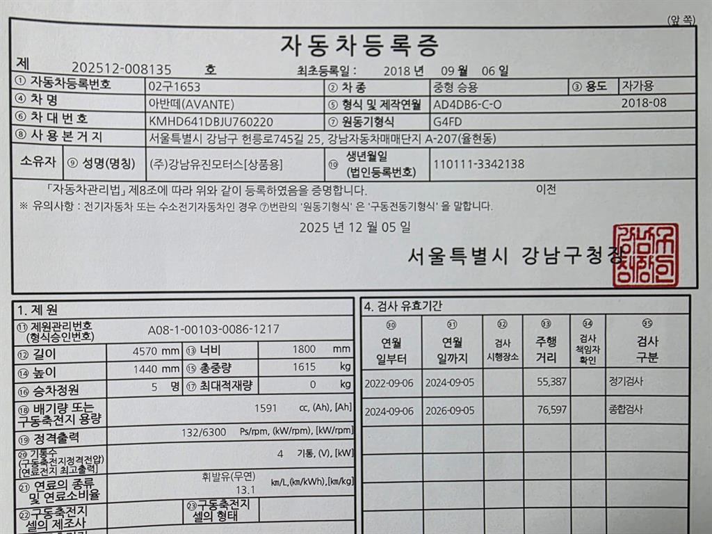 | 차량번호 | ----- | 02구1653 |