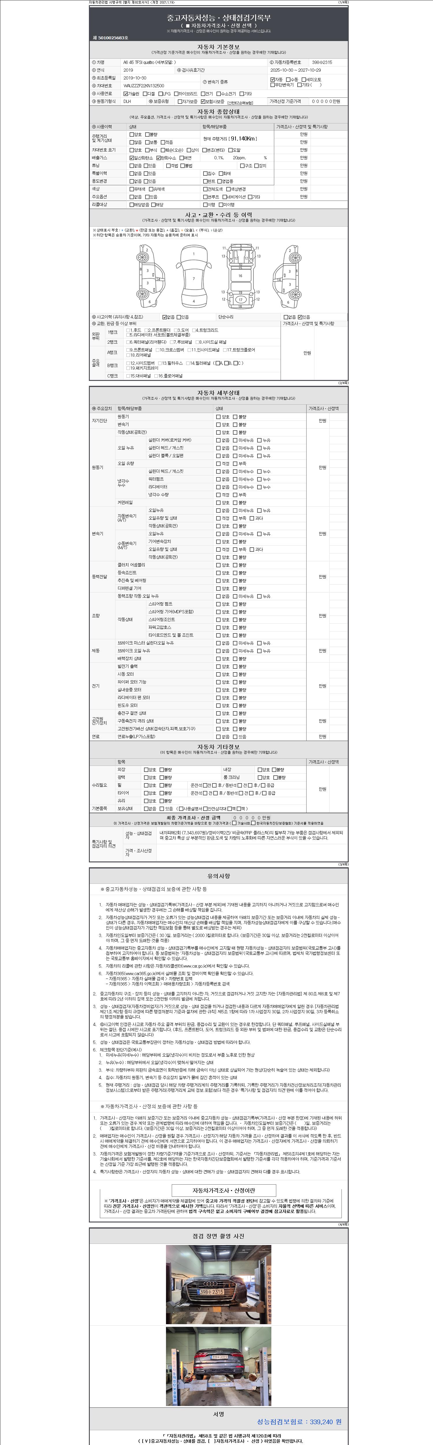 | 주행거리 | 91,140 km | 차량번호 | 398수2315 |