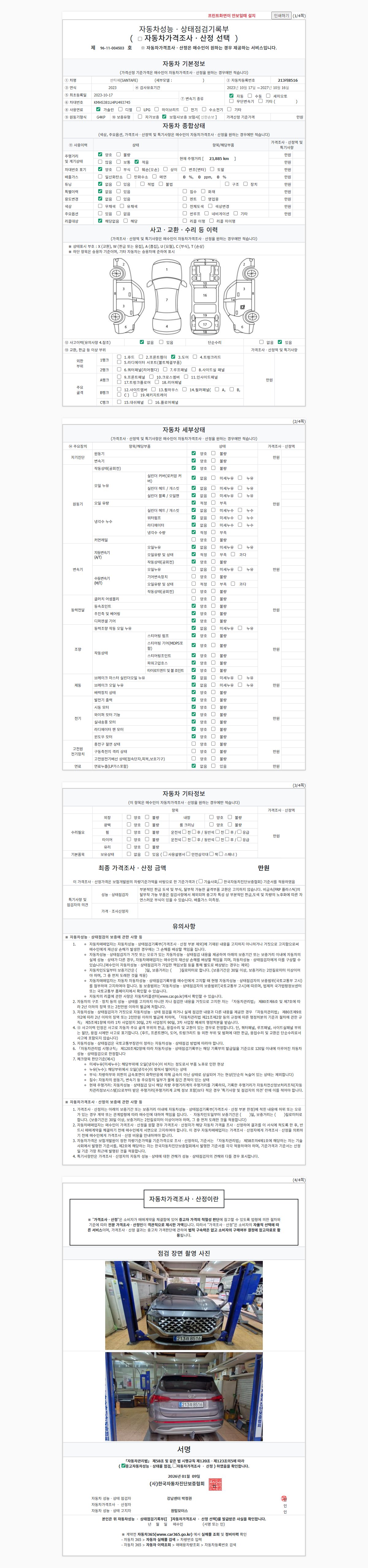 2. 차량 등록증이나 성능점검지 등을 상담자에게 요청및 확인하시고 사전에 미리 점검 하시기를 권유드립니다.