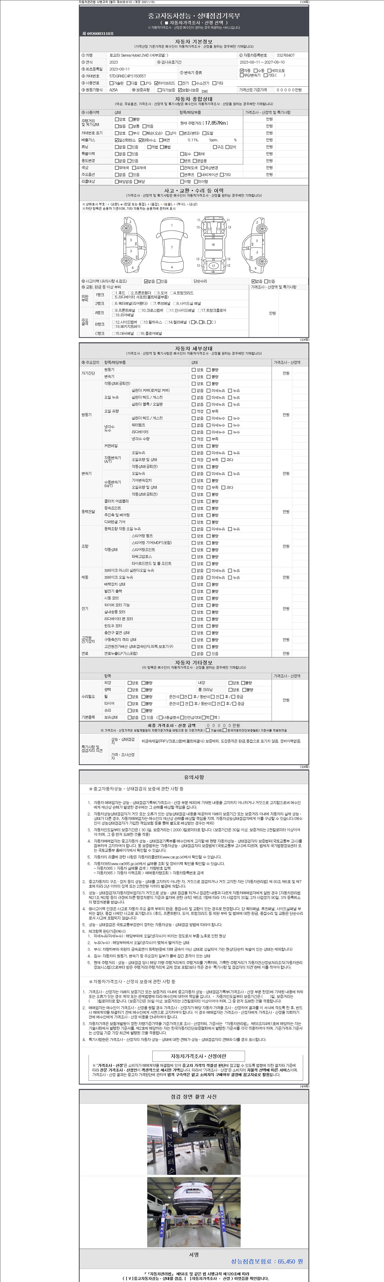 2. 차량 등록증이나 성능점검지 등을 상담자에게 요청및 확인하시고 사전에 미리 점검 하시기를 권유드립니다.